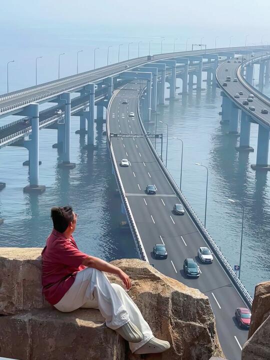 📍跨海大桥,森林动物园南门对面,山顶远眺海上大桥蓝天白云,白天晚霞夜景都好看