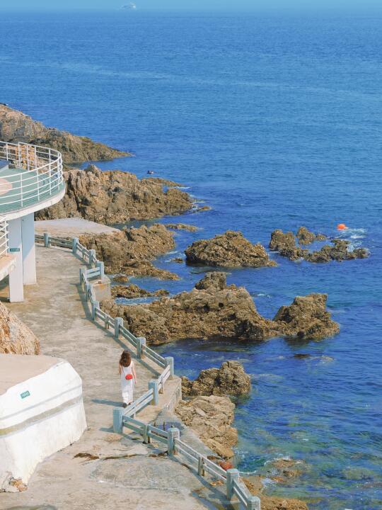 📍黑石礁公园,黑色的礁石看海水蓝天大桥搭配黑礁石,看抄袭表赶海