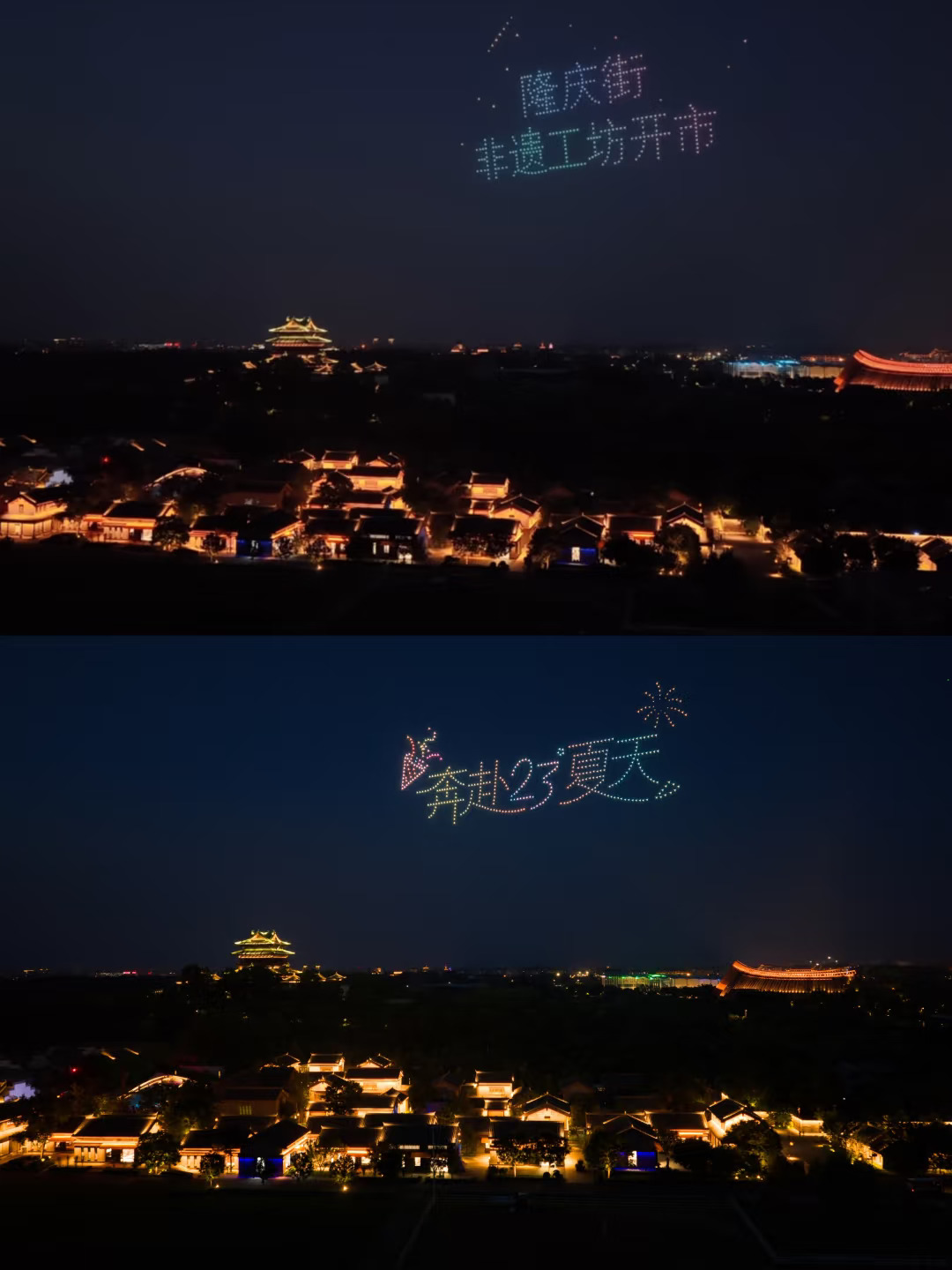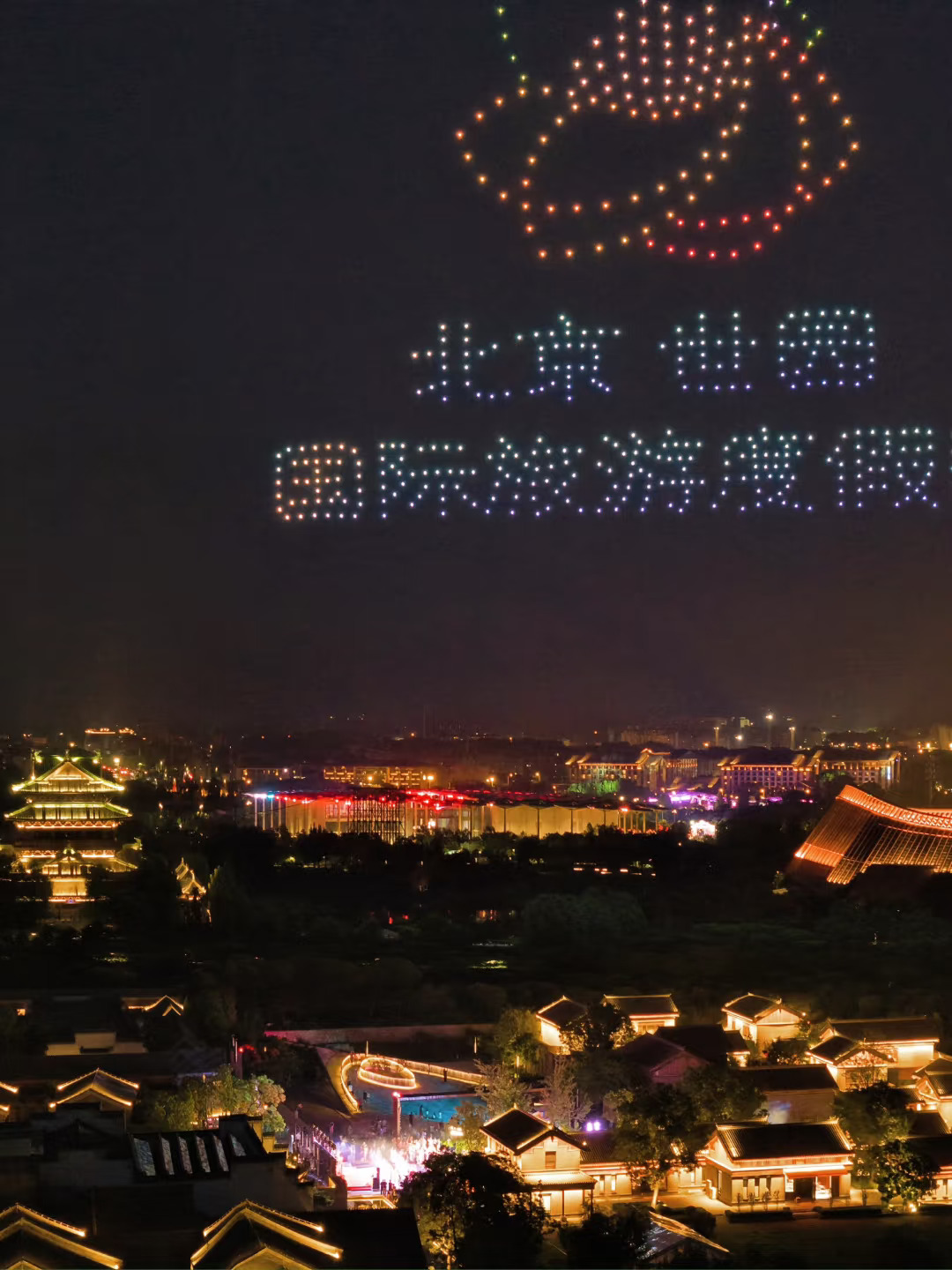 无人机表演也别错过,近千架无人机在夜空拼出各种图案,躺在草坪上看超有氛围感,情侣来这告白绝对成功率翻倍!