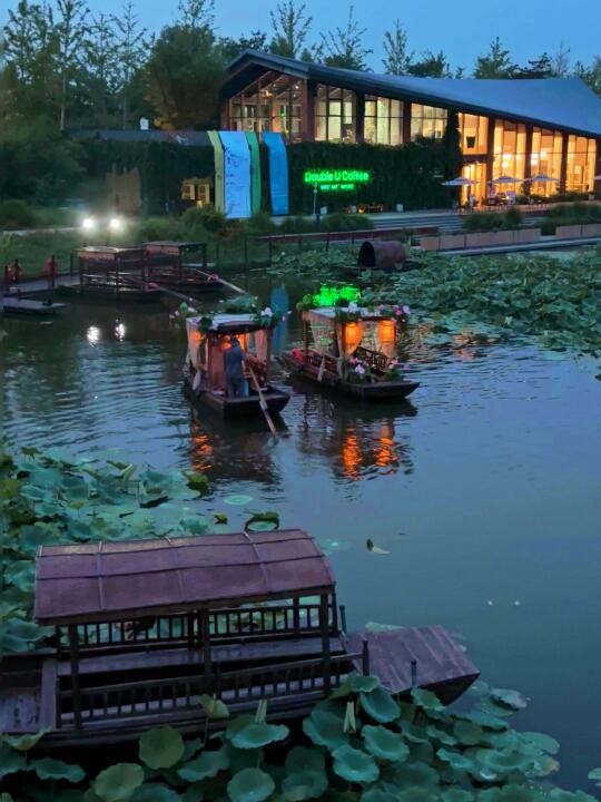 18:00后温榆河夜景荷花摇橹船才是是京城顶流!