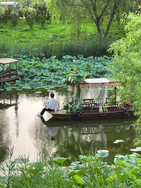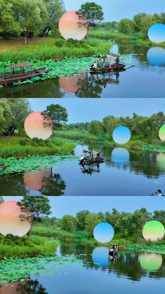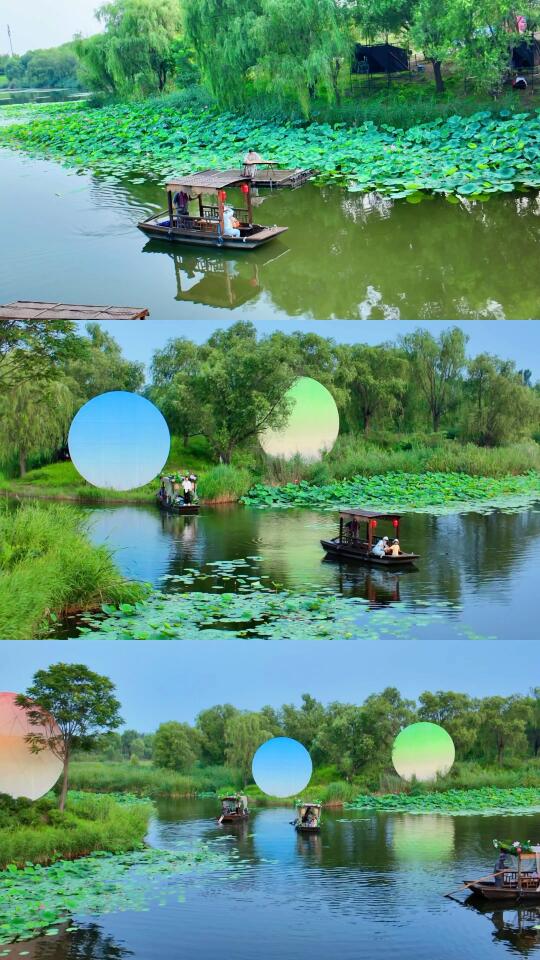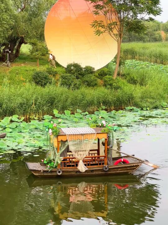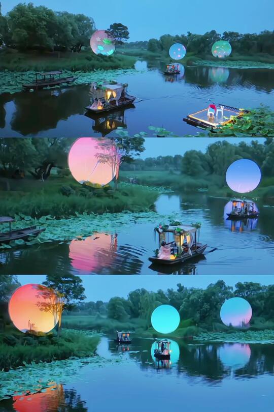 ✅ 摇橹船穿行月光荷塘—桨声灯影误入藕花深处,分秒穿越水墨江南