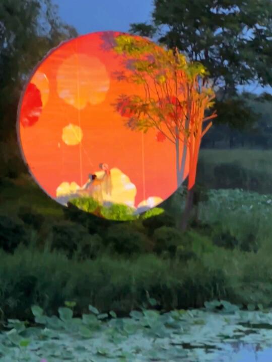 ✅ 湖中巨型荷花灯装置,夜幕拍照直出大片