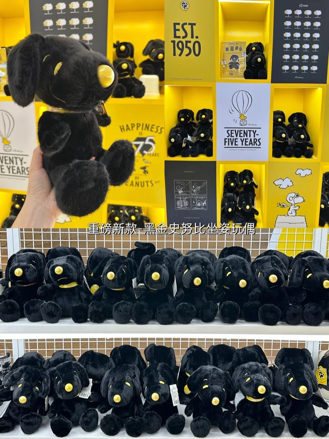 2️⃣这次的新款-黑金史努比坐姿毛绒!灯光下金色质感绝了!