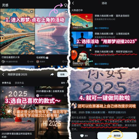 欢欢喜喜迎新年,开开心心过大年~ 新的一年怎么能少得了新的头像~即梦app就能满足你!可以制作专属于自己头像!还有朋友圈背景、状态视频、动态桌面等~每天都可以领积分或者次数🆓创作,记得每天登录领取积分哦,简简单单靠自己就能做!再也不用不用花钱找人做啦! 新的一年祝大家岁岁皆欢愉!年年皆胜意!❤