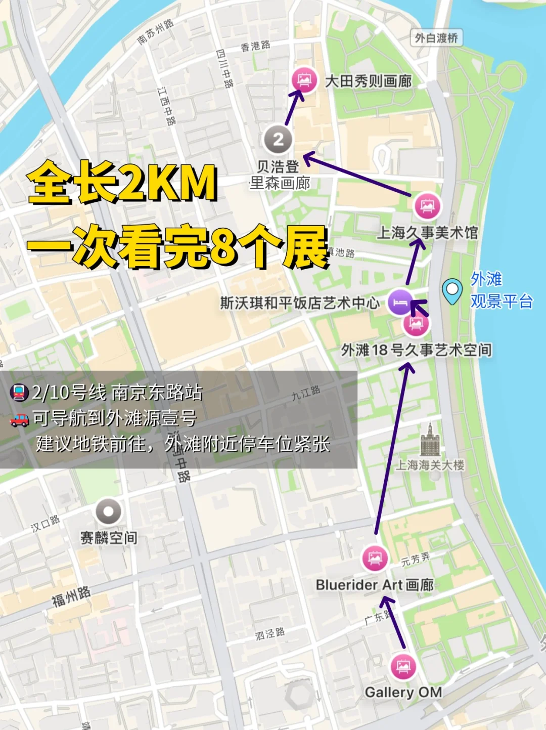 图2⃣附这些画廊的路线,可以从外滩源开始,也可以从Gallery OM开始,每个展都不大,可以慢慢看!
