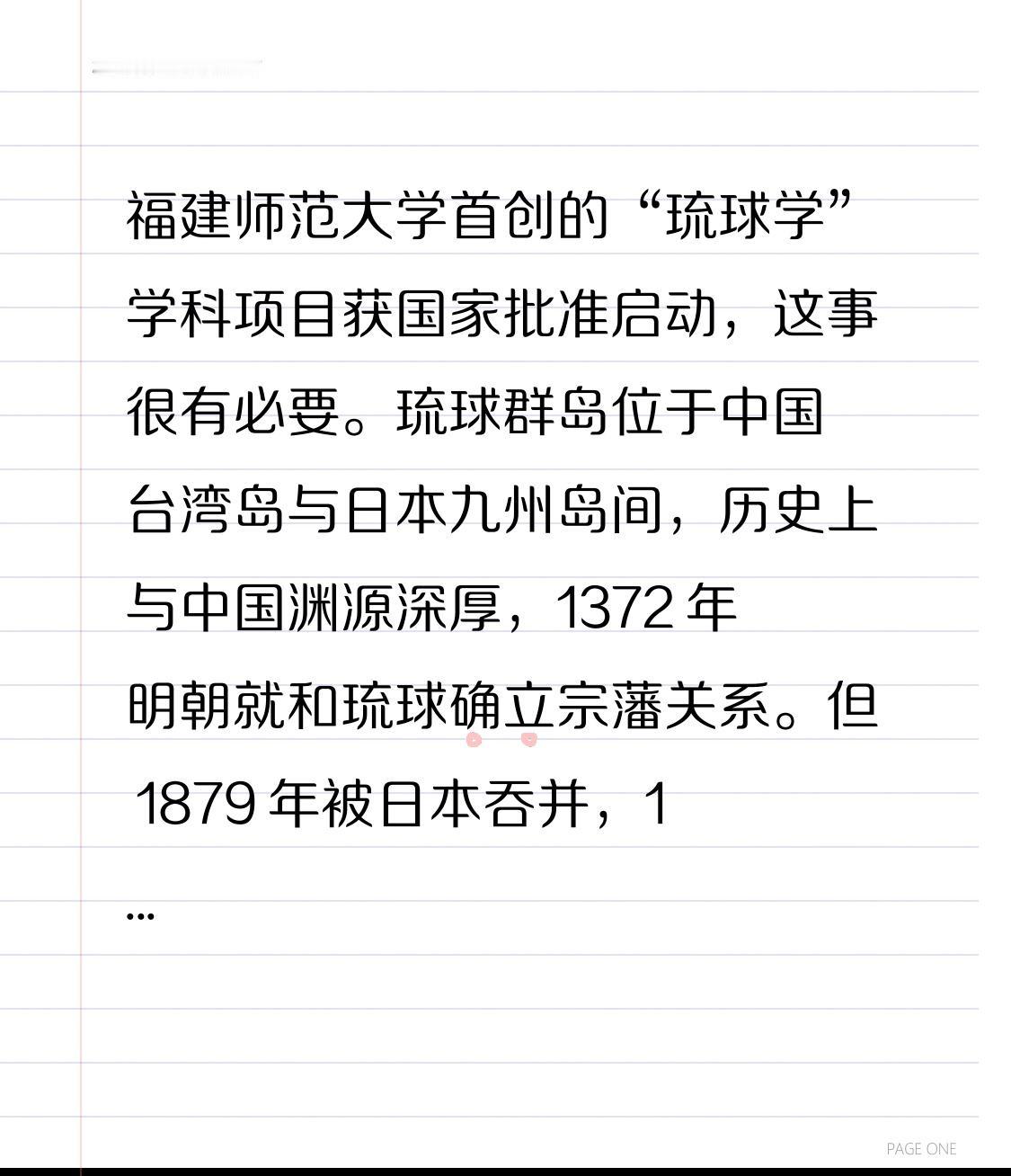 福建师范大学首创的“琉球学”学科项目获国家批准启动,这事很有必要。琉球群岛位于中国台湾岛与日本九州岛间,历史上与中国渊源深厚,1372 年明朝就和琉球确立宗藩关系。但 1879 年被日本吞并,1972 年美日私相授受其施政权。自那时起,琉球主权归属的历史与法理争议一直存在。 研究“琉球学”,能让我们厘清历史事实,看清日本军国主义的危害。而且,琉球的地缘、战略及未来走向,关乎周边安全。如今中外学界对其关注度不断上升,“琉球学”的研究正当其时。