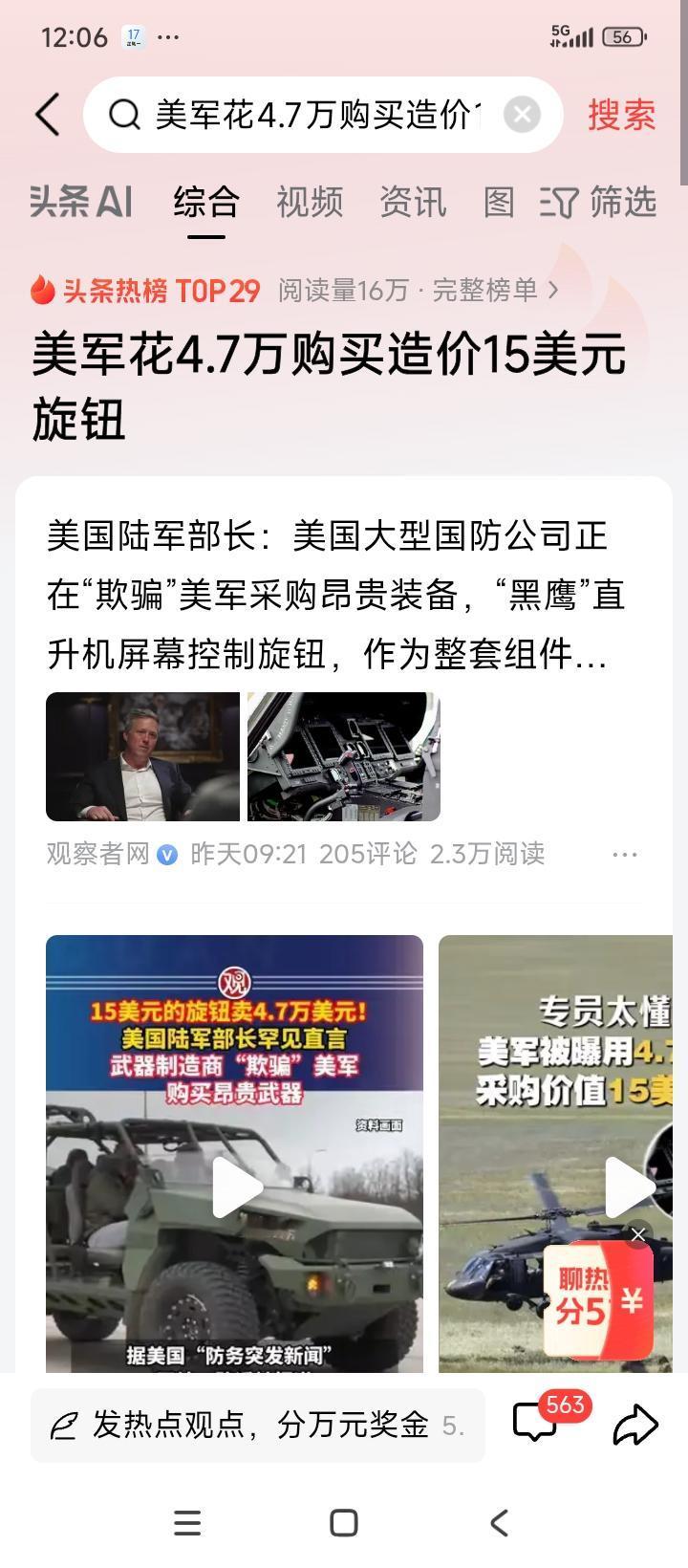 美军这操作真是让人惊掉下巴!花4.7万美元去买造价仅15美元的旋钮,这差价也太离谱了。16万的阅读量说明大家都对这事儿很关注。这就好比去市场买颗白菜,结果花了买一头牛的钱。很难想象这背后藏着多少猫腻,是采购环节出了问题,还是有什么不可告人的利益输送。4.7万和15美元,这巨大的数字落差,简直就是对纳税人钱的肆意挥霍。美军这么搞,也不知道会寒了多少人的心,真希望能有个合理的解释。