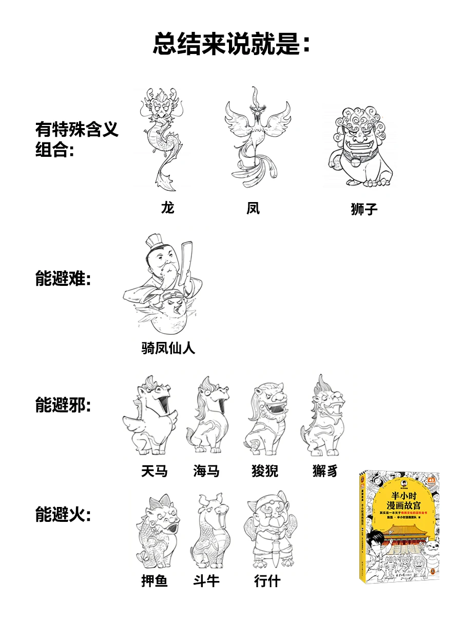 为了方便记忆,口诀当然也是必不可少的:一龙二凤三狮子,天马海马六狻猊,狎鱼獬豸九斗牛,last行什像个猴。