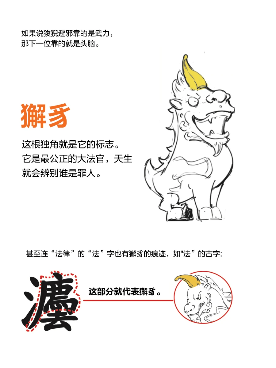 獬豸:有神羊之称,俗称独角兽,象征公正无私,又有压邪之意。