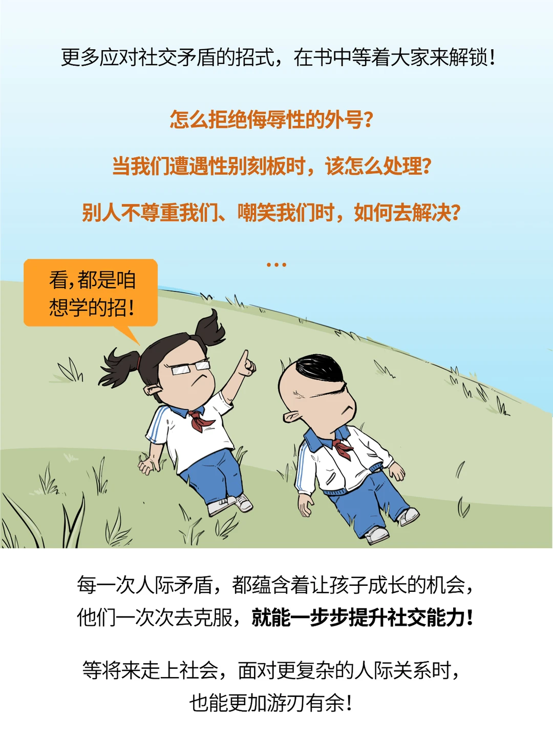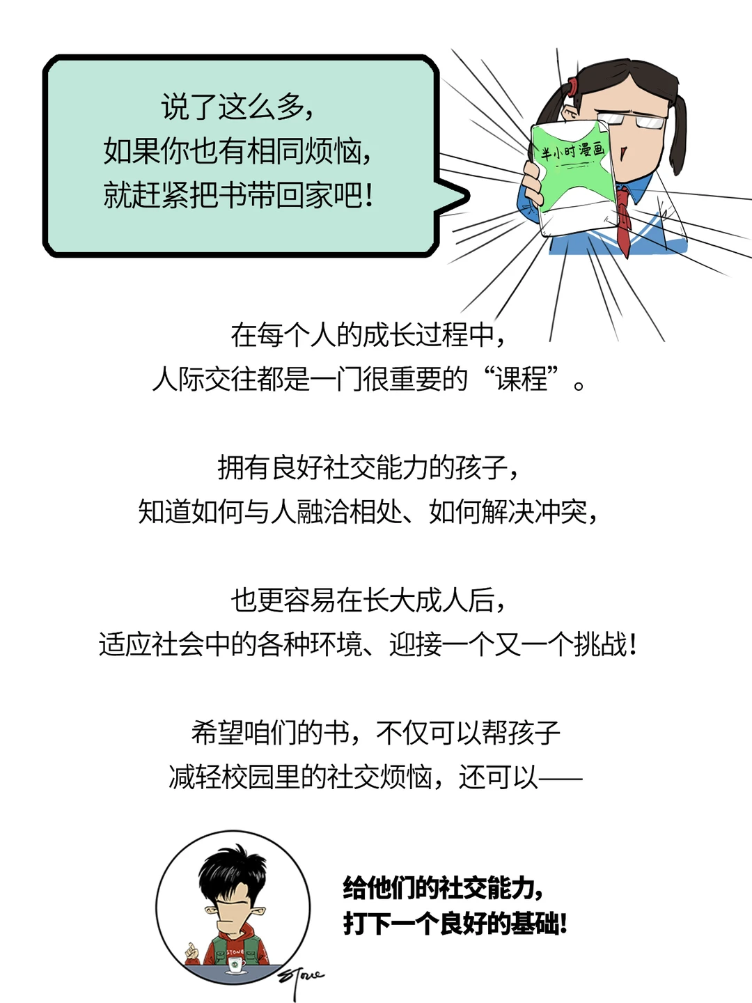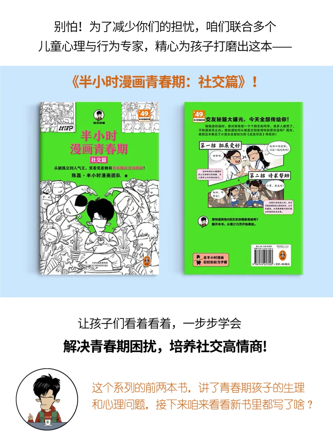 家长朋友们,你们发现没? 不少孩子一到青春期, 遇到烦心事儿了,是真不爱和爸妈说。 有的娃表面上若无其事的, 很可能私底下在偷偷崩溃。 而这阶段,容易让他们崩溃的原因之一, 就是:在校园里遇到了各种社交问题: - 交不到好朋友 - 被嘲笑、被打击 - 被传绯闻 - 害怕老师…… 为了减少孩子们的社交烦恼, 咱们混知团队联合了多个儿童心理与行为专家, 精心为孩子们打磨出这本—— ✨《半小时漫画青春期:社交篇》! 让孩子们看着看着, 一步步学会解决青春期困扰, 培养社交高情商! 想要购买的,找ta