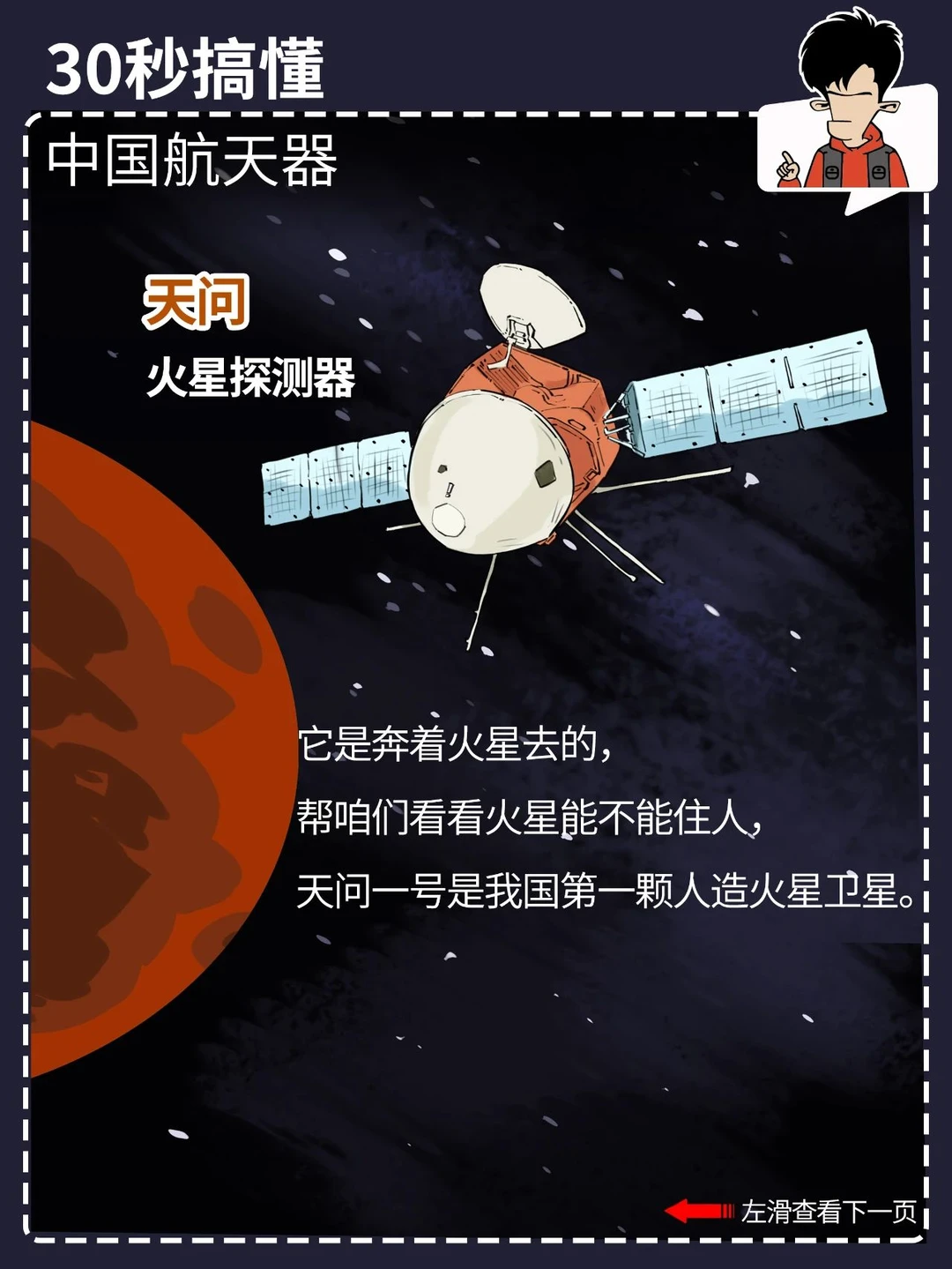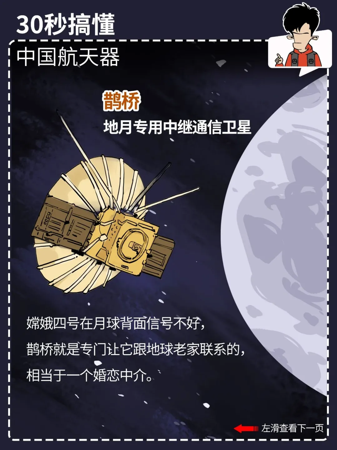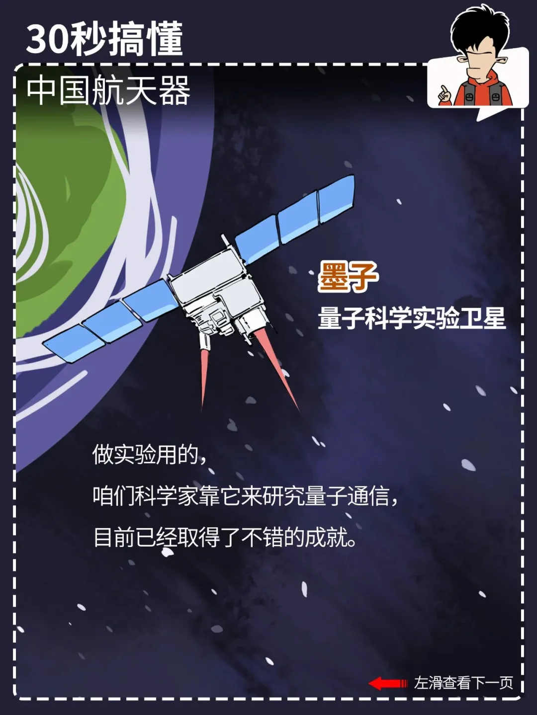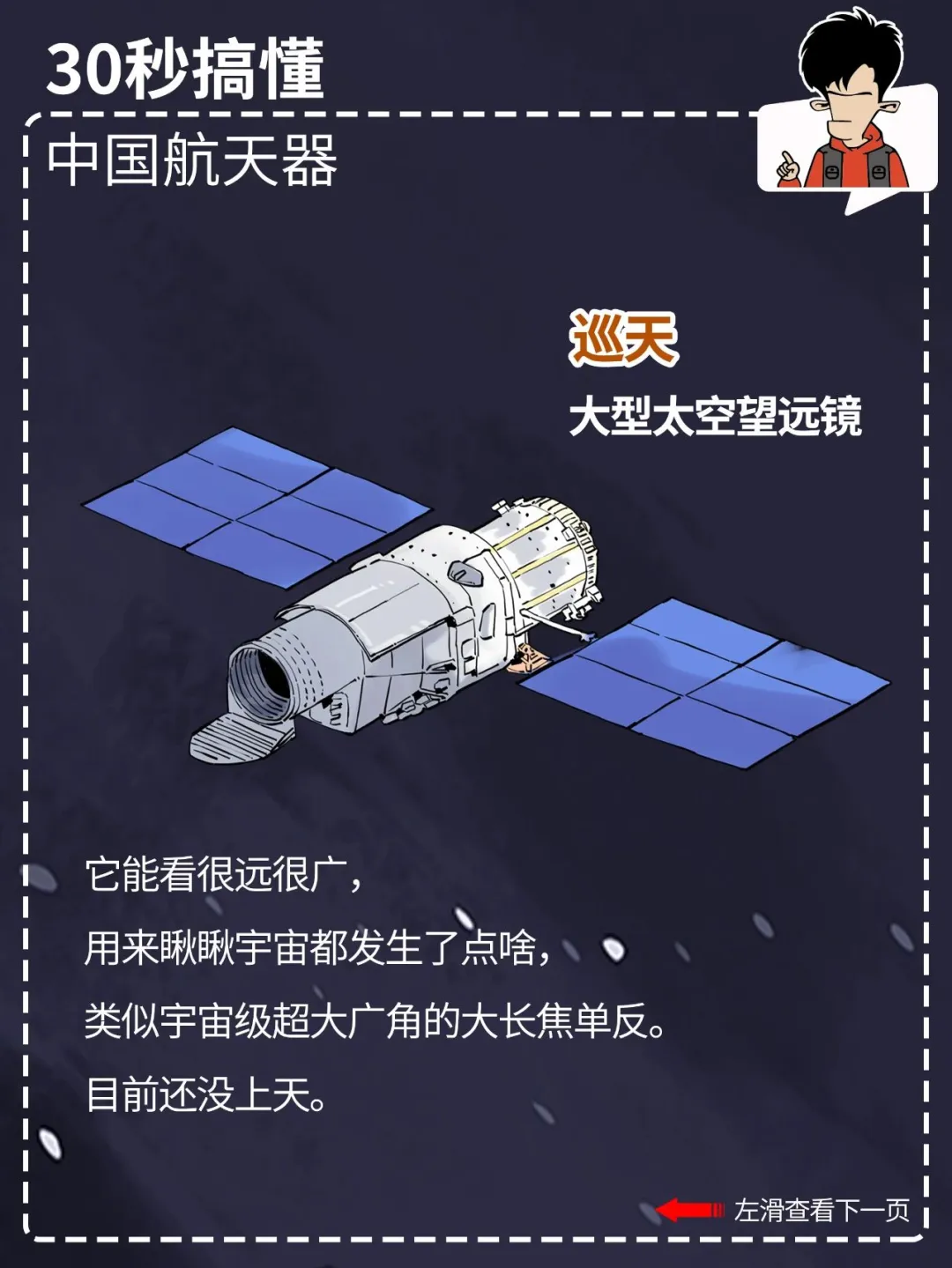都看新闻了吗? 就在今天,中国航天人又双叒叕搞大喜事,神舟十七号发射圆满成功! 咱中国的航天事业发展得这么好,外太空里一堆航天器: 什么嫦娥、巡天、天问、北斗、悟空、墨子、天宫……你光知道神舟可不够。 混子哥用 30 秒,带你搞懂各种中国航天器都是干啥的。 点击图片,看清晰大图,方便保存、转发。