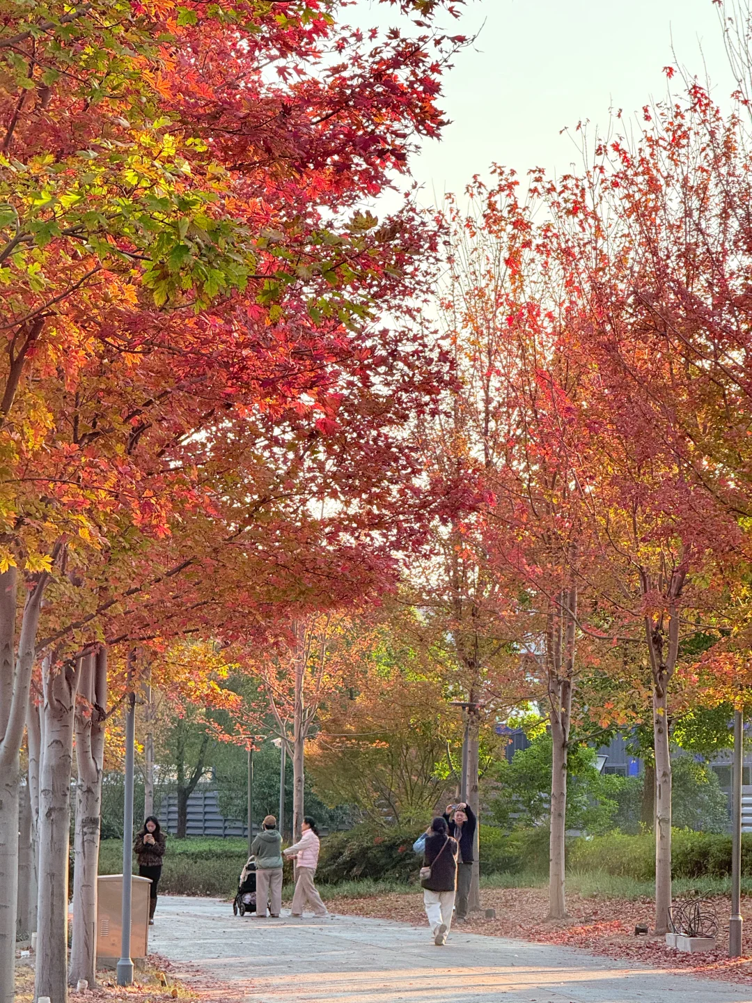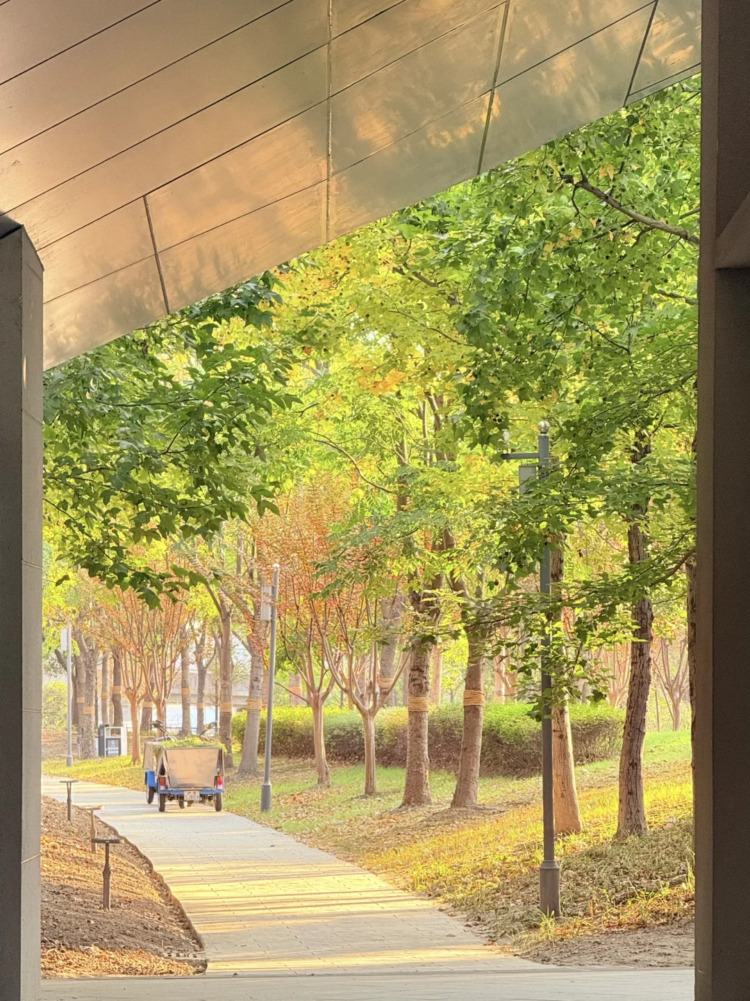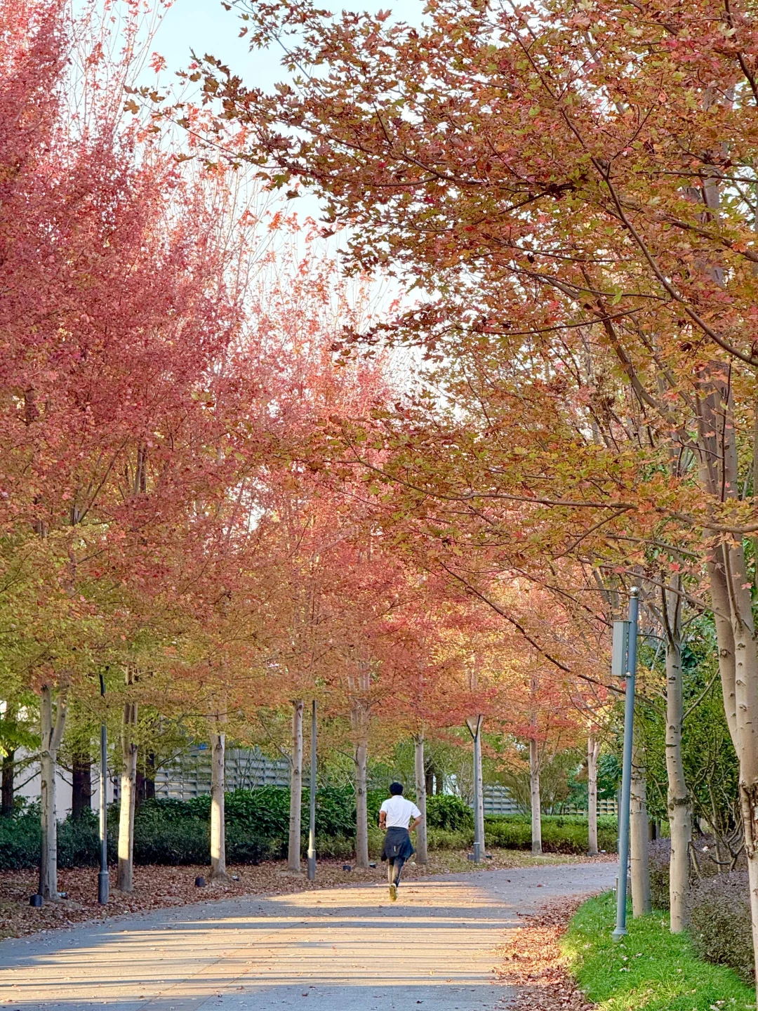 红叶季预计1个月,图片为11.20live实拍 人少景美的小公园,天桥、远处的欧式房子都很📷出片,🈶儿童玩乐区适合遛娃,苏河畔还能骑行~ 🍁11月中旬~12月中旬 📍上海云岭东路1000号 🚶推荐路线: 从北往南-儿童乐园-木栈道亲水平台-天桥-旋转楼梯-儿童乐园-枫叶小道