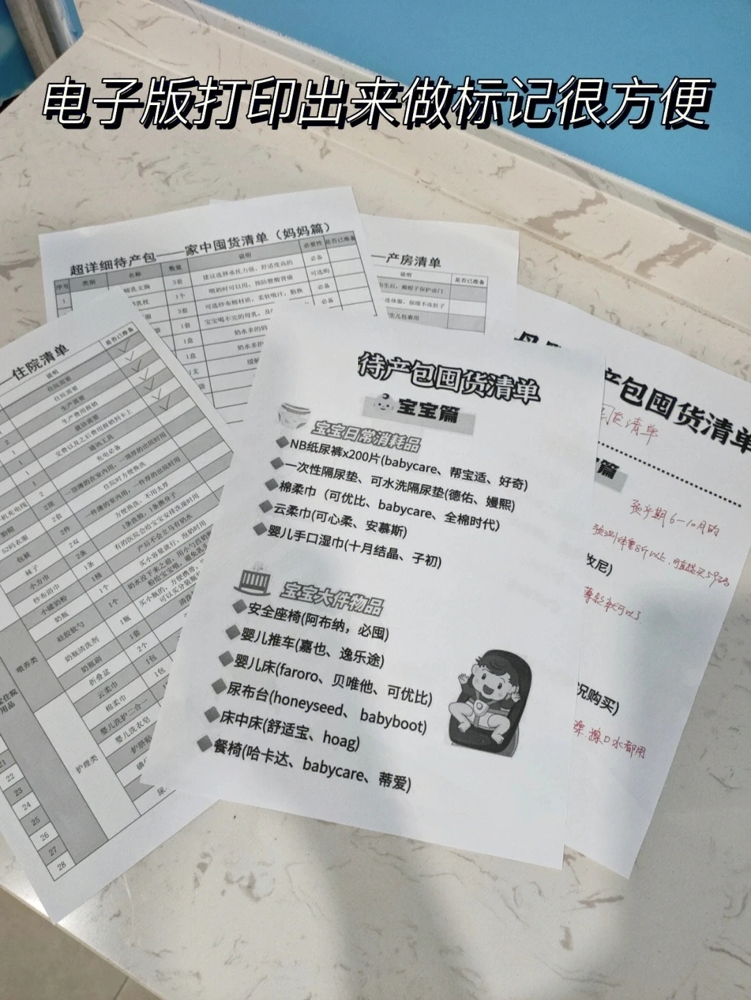 打印成纸质版,更方便盘点,不会乱,去医院的时候有清单也可以查看用品放在哪个包裹,不然人一多,找不到东西,很慌乱。