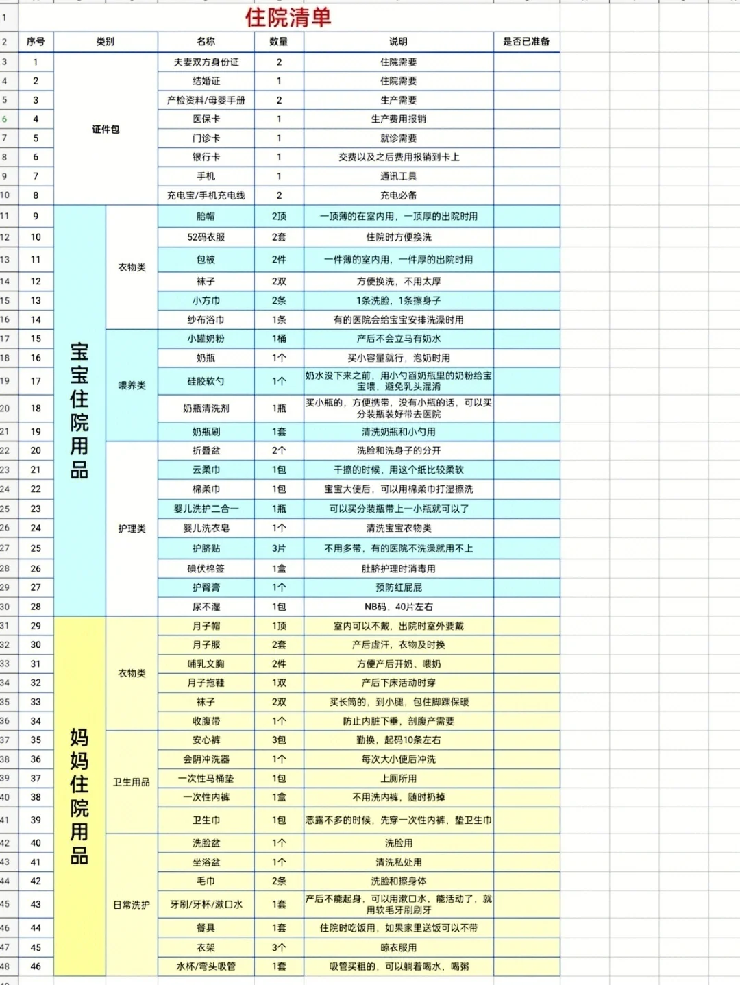 💟吐血整理,应该是zuizuizui齐全实用的待产包清单啦❗️❗️❗️