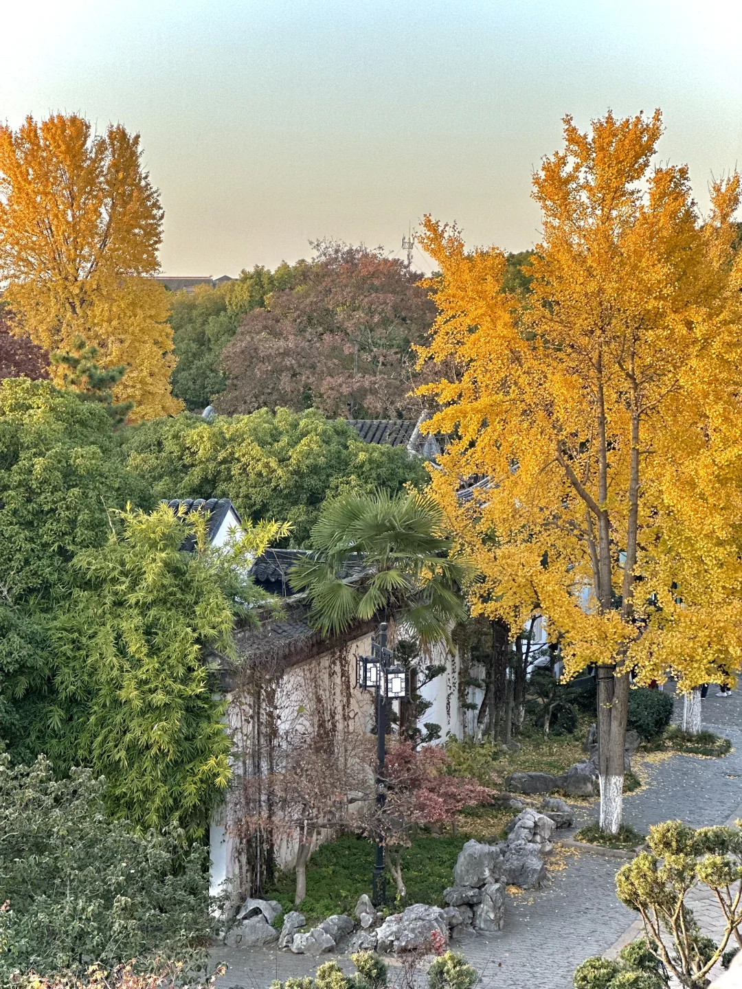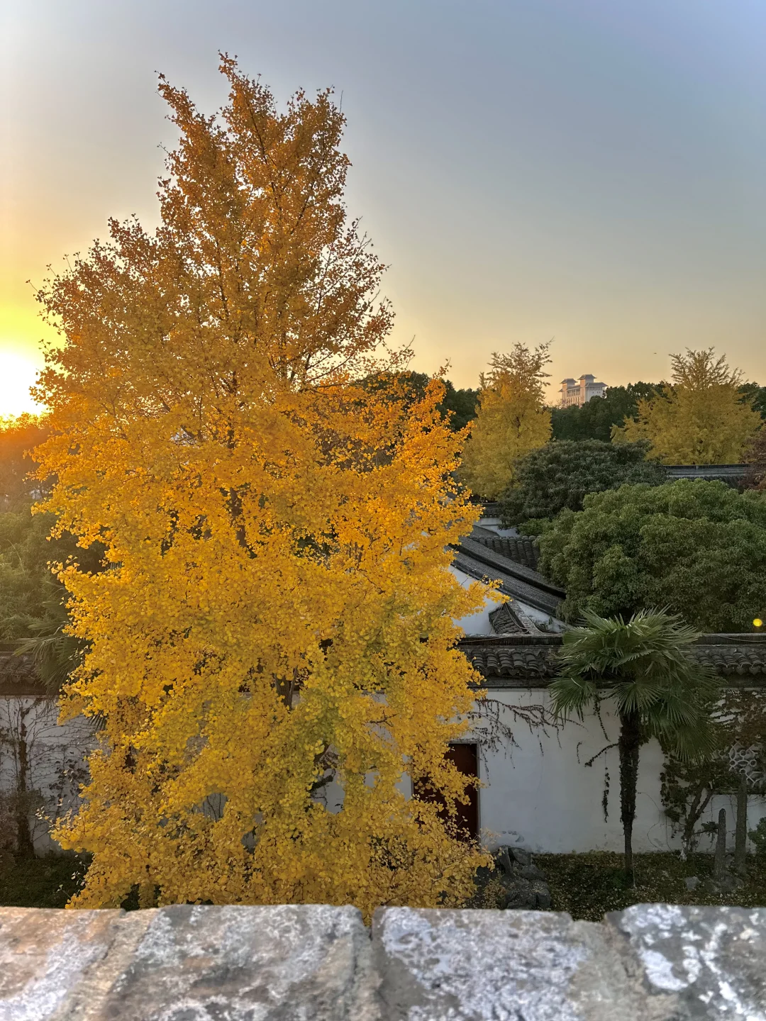 苏州人有自己的琉璃光院… 盘门值得❗️‼️ 1伍相祠内隐秘小院 红橙黄绿四色树集齐!配上美到失语的格窗… 2城墙上望出去 两棵巨大银杏树🍂还能看日落!黄昏时分绝绝子! 这40块花得我心满意足啊啊啊💯