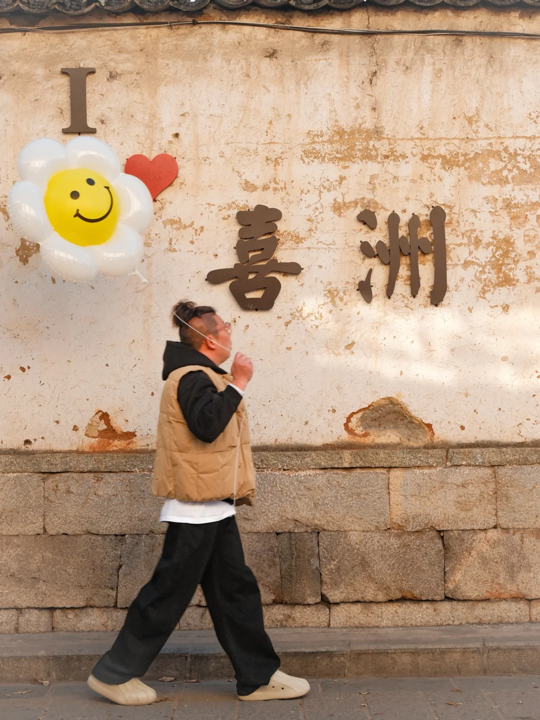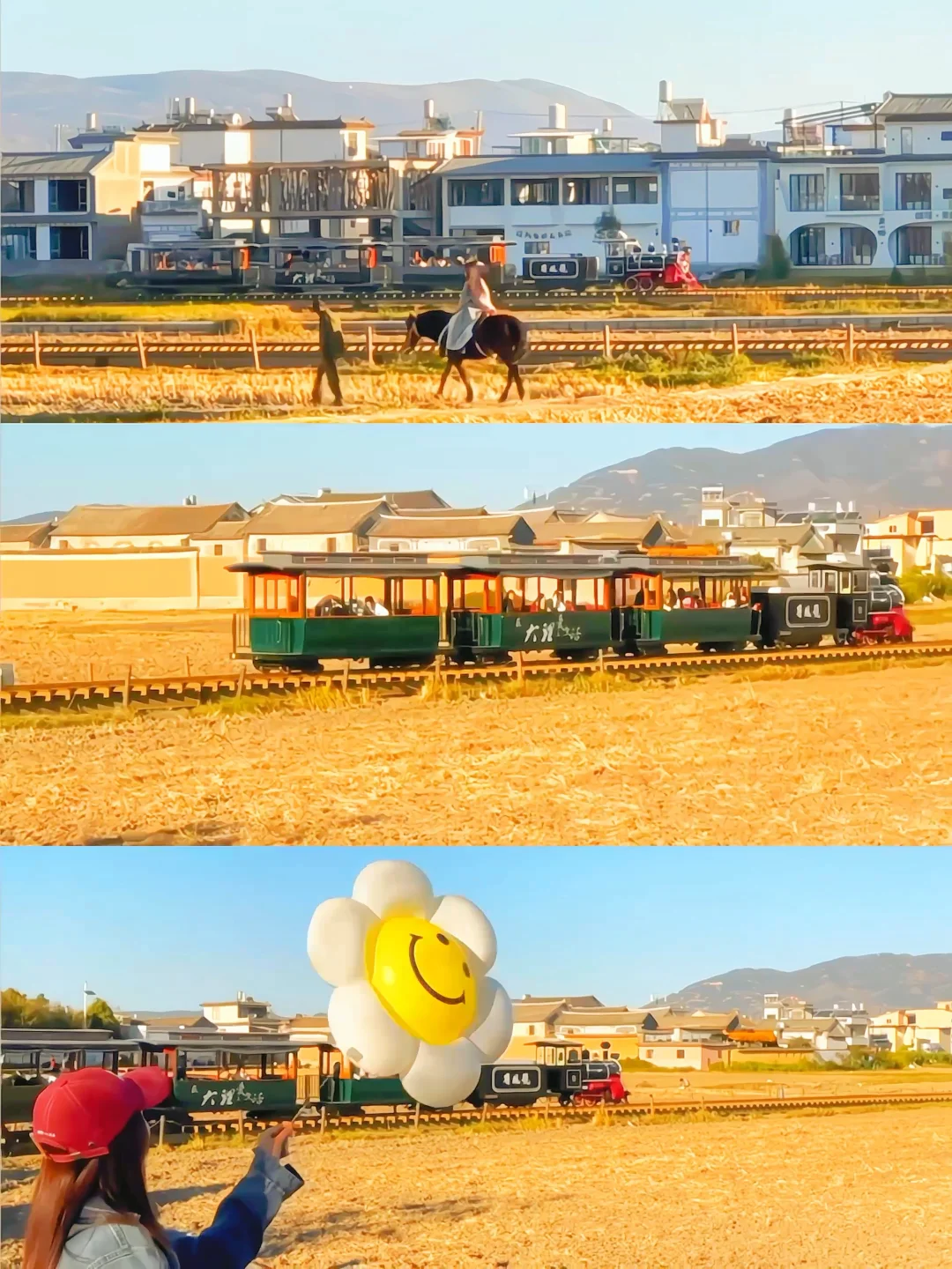 经典机位基本上分布在“转角楼”旁边的两条道路,喜洲古镇的商业主街,再去南北走向拍喜洲打卡墙、喜洲稻田火车🚄