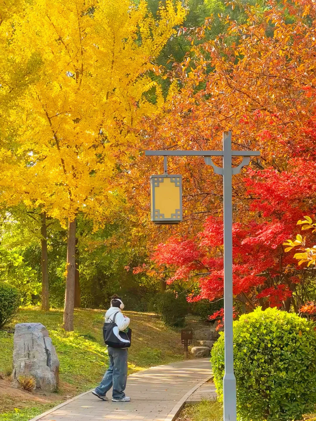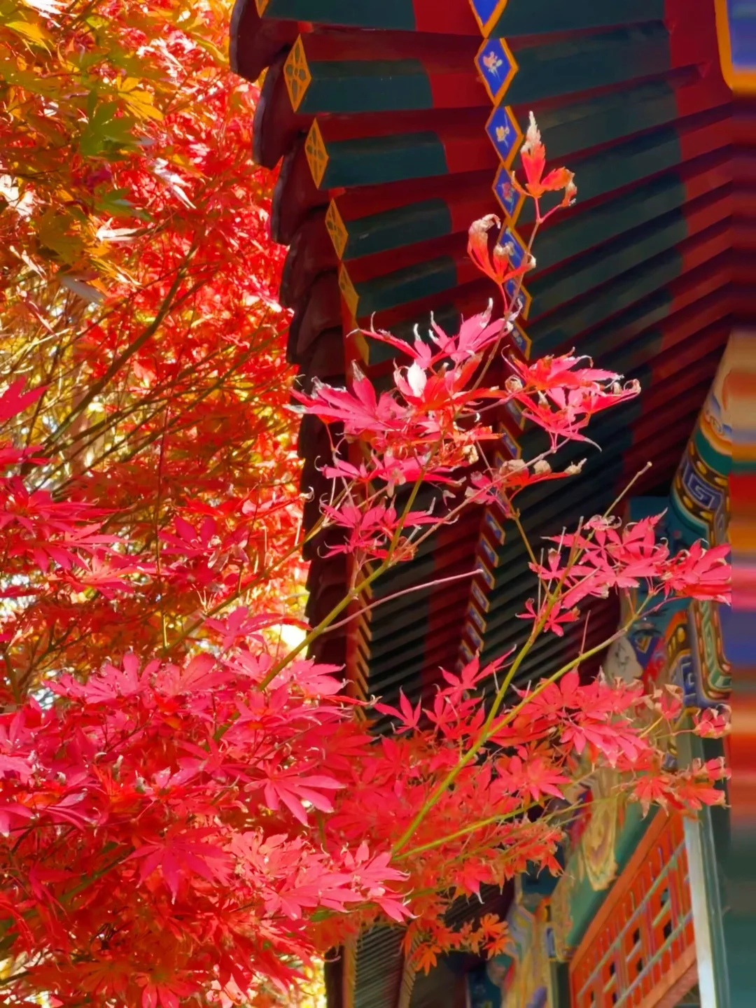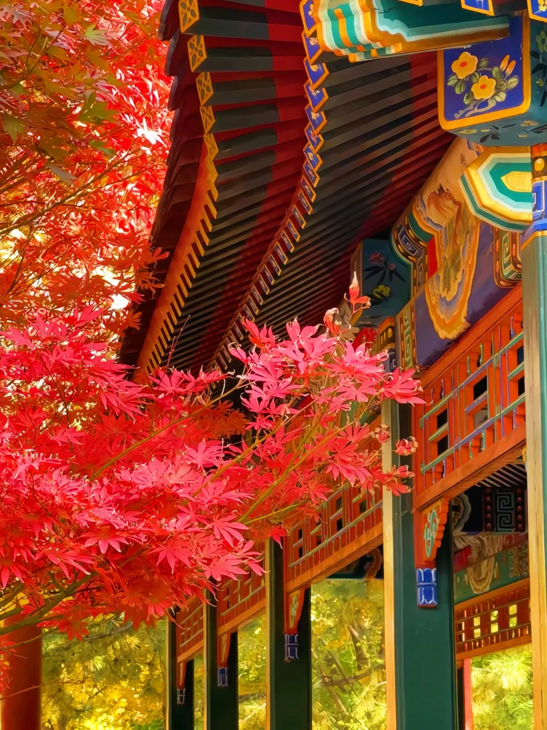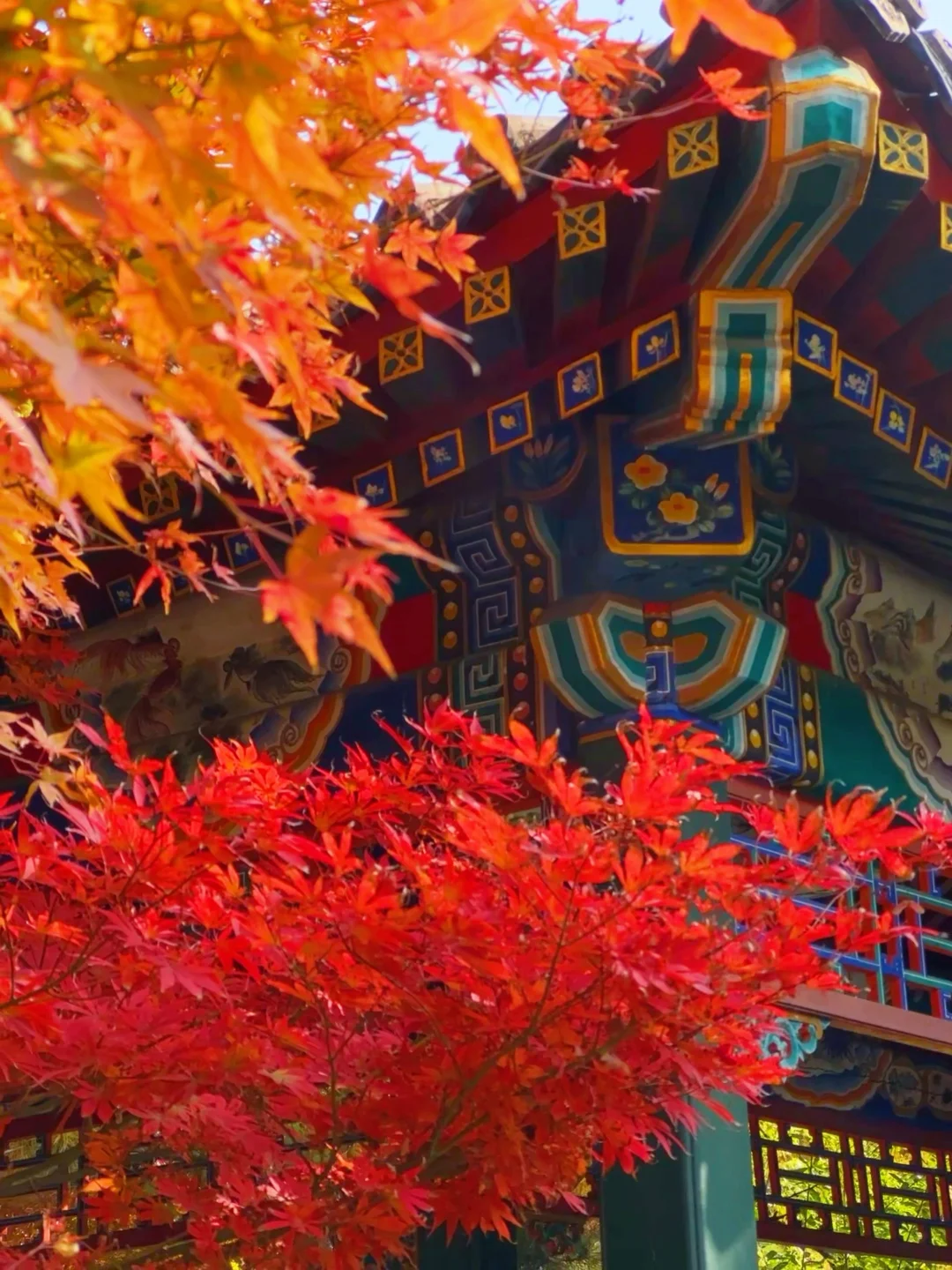二环内的宝藏小众公园!公园玉棠广场边上,古色古香的中式长廊配上红枫,贼出片
