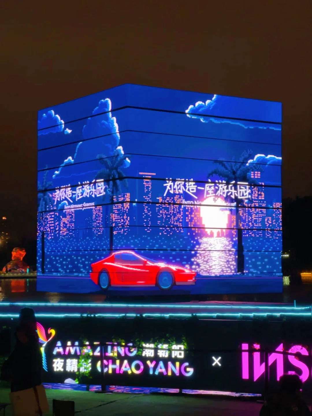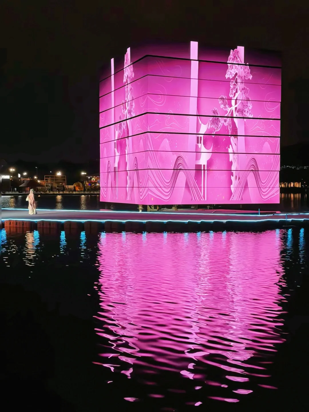 •👉魔方漂浮舞台:北京首个水上机械立方体晚上会旋转变光,还能看芭蕾演出!17:30-23:00亮灯,周末有杨丽萍团队的《凤鸣·朝阳》舞蹈