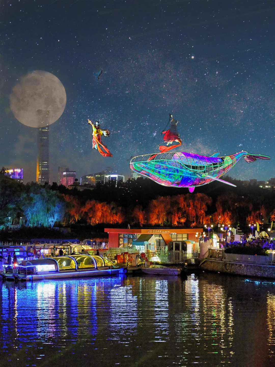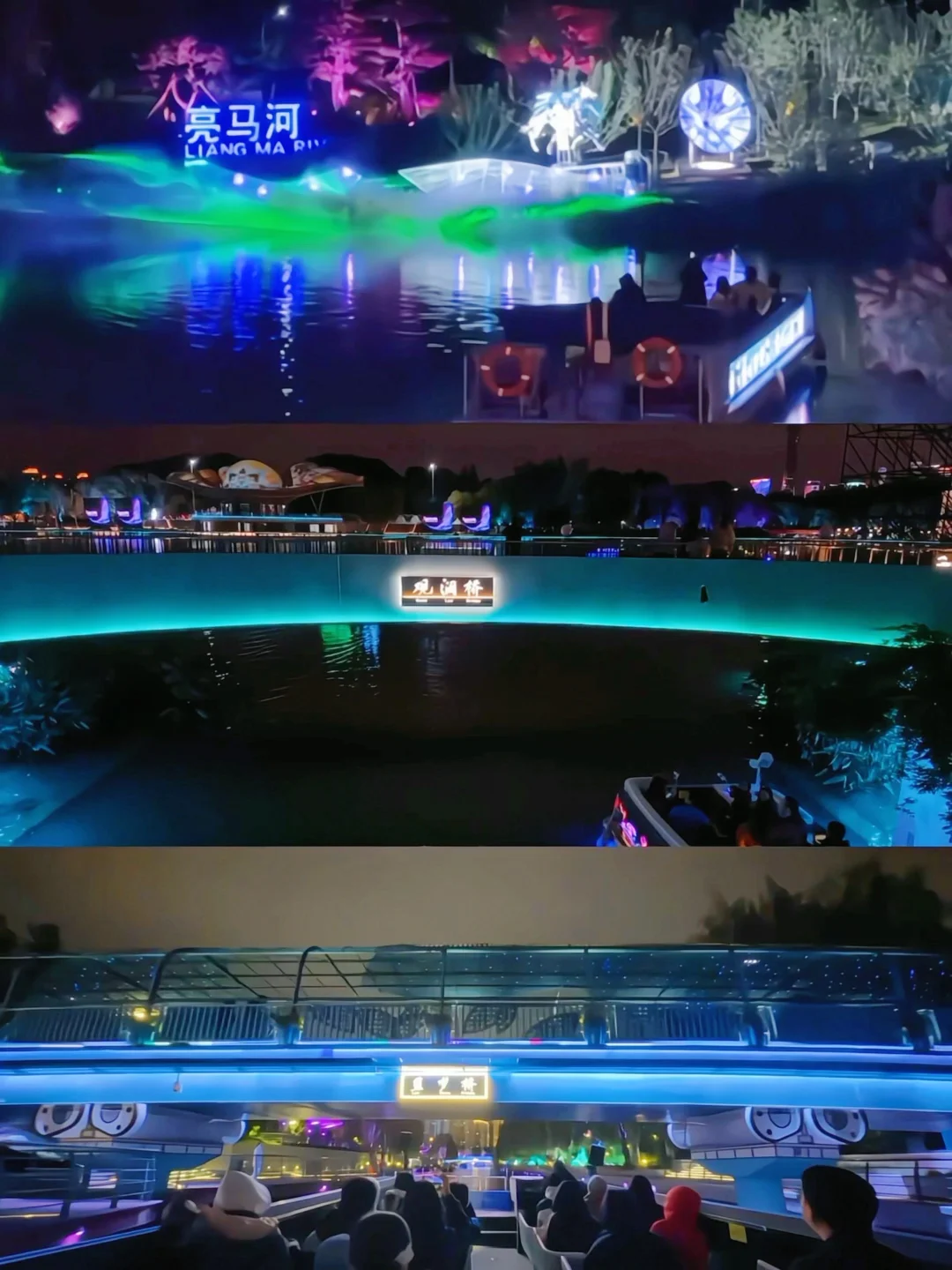 2. 坐亮马河游船“追光专线”(18:30-22:30)45分钟路过多个光影节点,水面倒影绝了