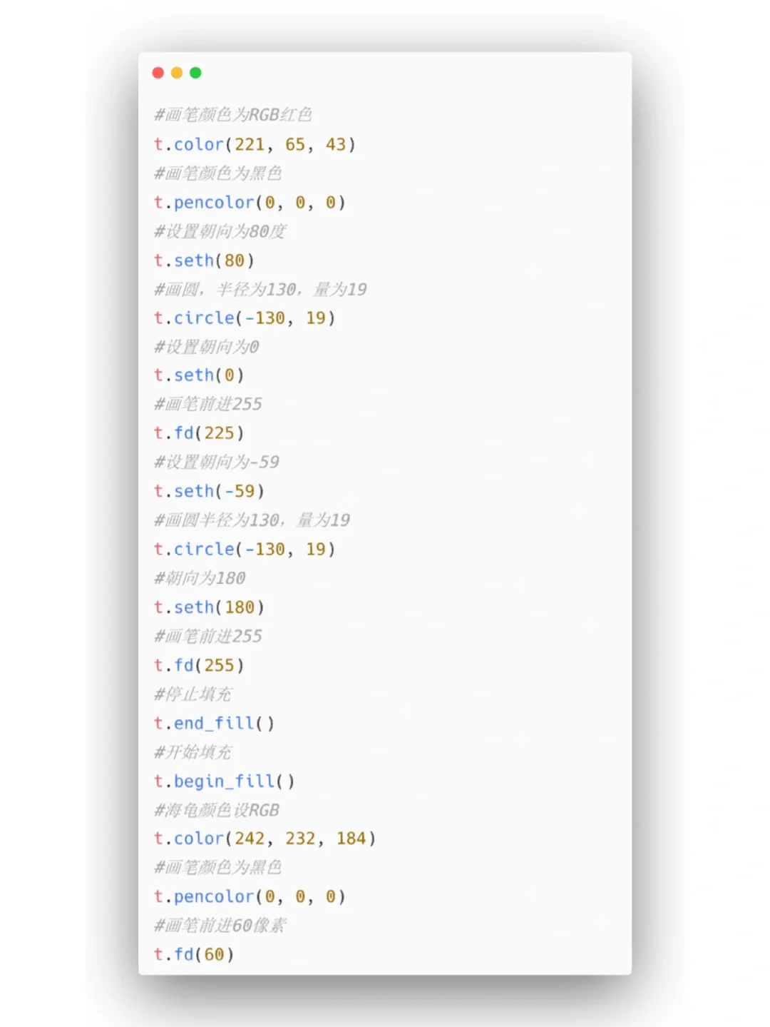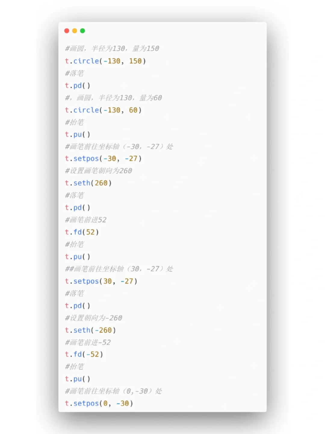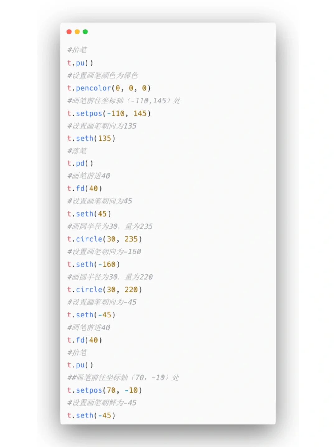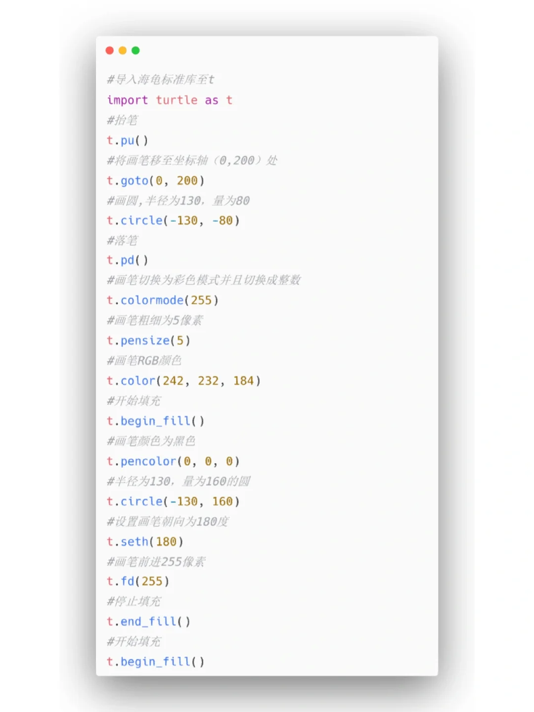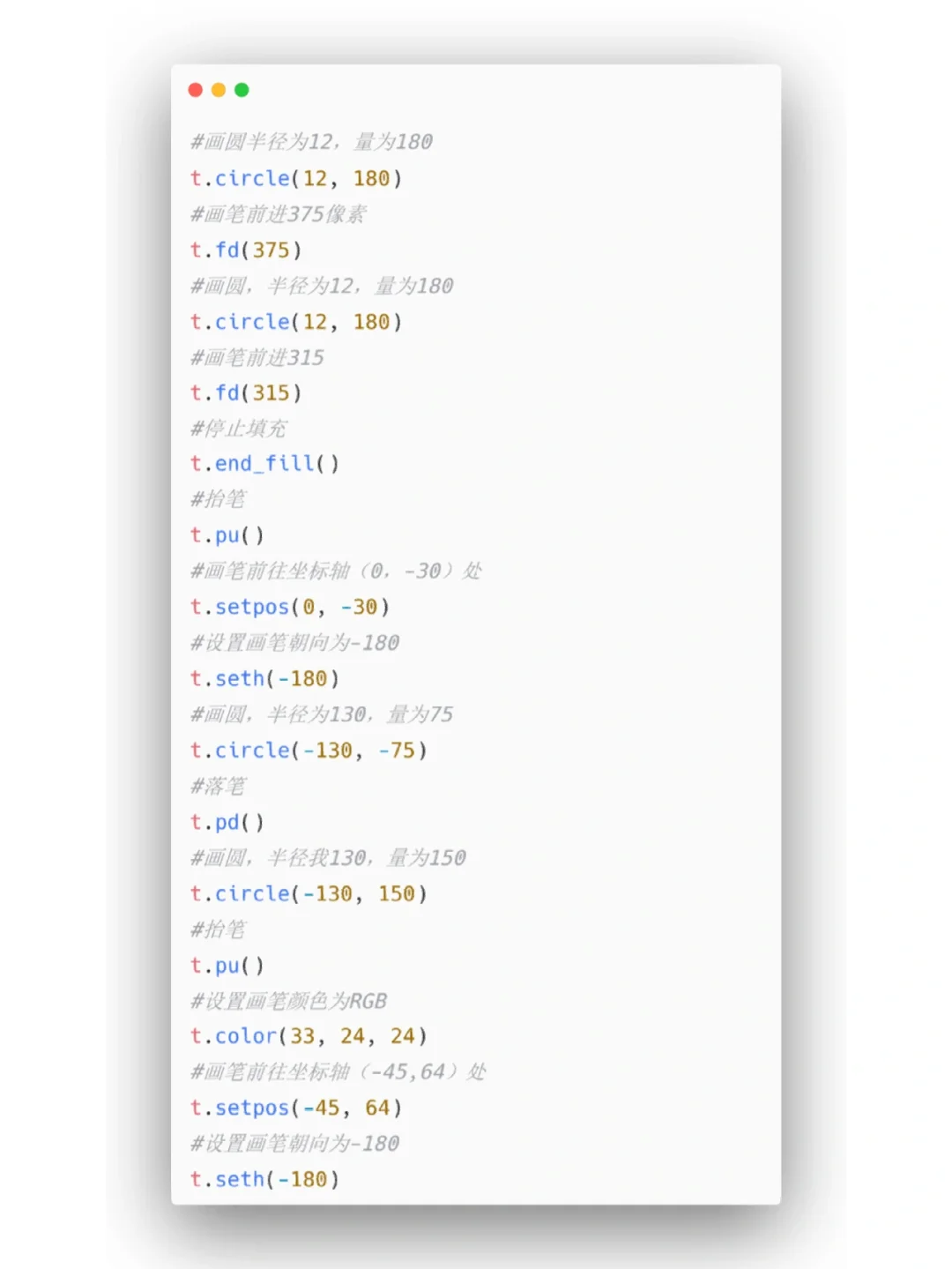 很久没分享Python海龟绘图库(turtle库)的案例了[萌萌哒R][萌萌哒R] 今天给大家分享的是用turtle库画一个骷髅头❗❗❗ ~ [火R]图文说明: 图[一R]:骷髅头运行结果。 图[二R]~图[一R][一R]:骷髅头💀源代码。 ~ [火R]程序说明: 👉总的两百多行程序,一行注释跟上一行代码。 👉其实只有一百多行代码。 👉程序没有用到复杂的结构,很适合新手去练习。 ~