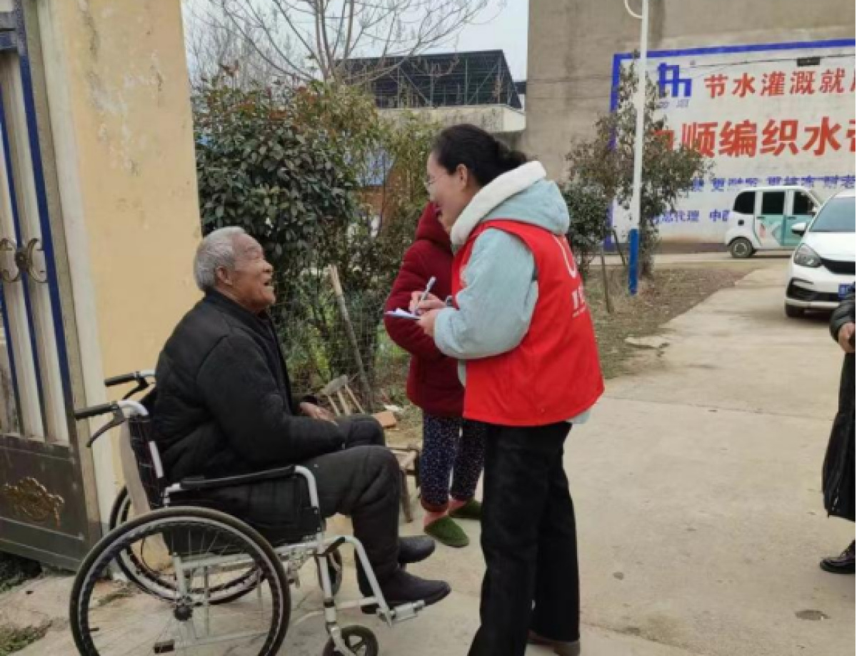 为弘扬孝老爱亲传统美德,营造尊老敬老助老的良好社会氛围,12月3日,河南省唐河县毕店镇青年突击队开展残疾老人专项走访行动,15名平均年龄26岁的队员身着红马甲,深入12个行政村,为23户残疾老人送去温暖。