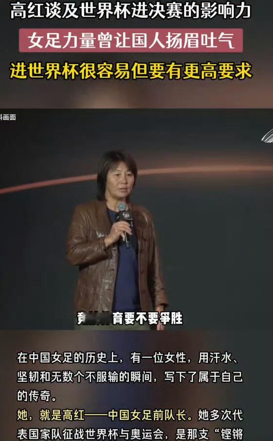 前女足队长称中国女足进世界杯很容易高红忆女足征战1999世界杯,北美华人齐唱国歌助威,铿锵玫瑰用赛场拼搏,让海外同胞收获满满的民族骄傲!高红说女足力量曾让国人扬眉吐气