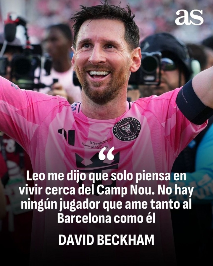 贝克汉姆表示:“我希望梅西退役后能住在迈阿密。但梅西告诉我,他只想住在诺坎普球场附近。没有哪个球员像他那样热爱巴萨。你可以在他的腿上,甚至在他的水瓶上看到巴萨的队徽。”