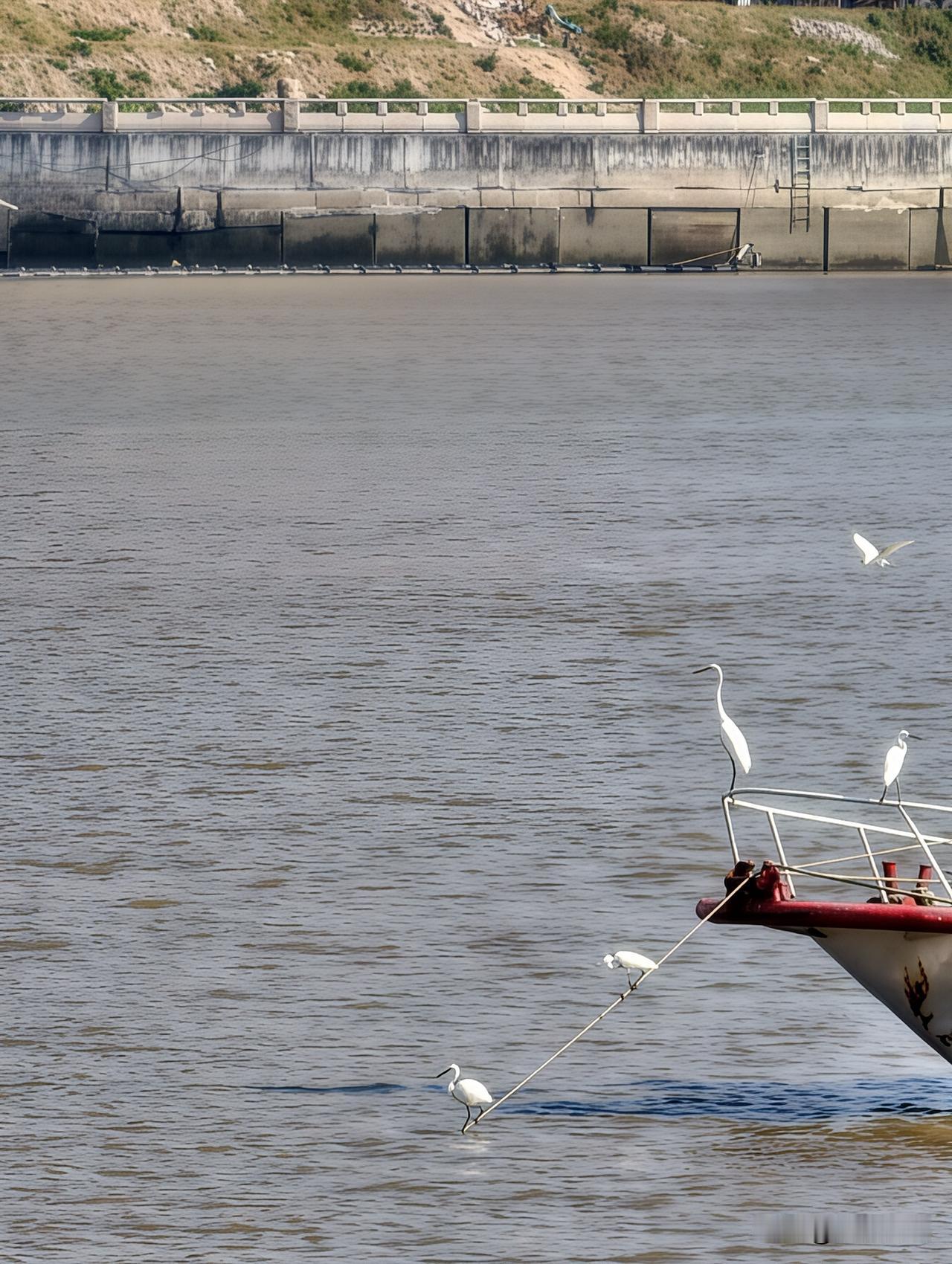 候鸟又回来过冬了。这是白鹭吧? 在江边赏鸟,晒太阳。太舒服。