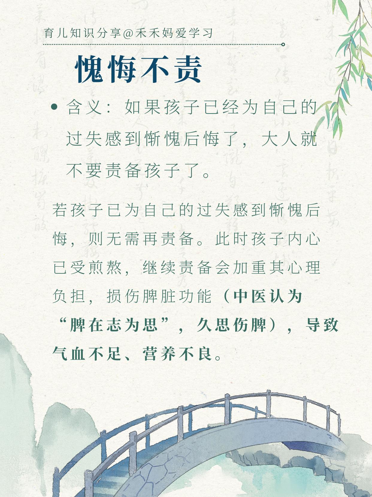 老祖宗的育儿经验绝非都是“糟粕”,其中很多还是非常有智慧底蕴的。 我国是一个有着上下五千年文明历史的国家,这么多年来,在漫长的育儿实践与文化传承中,先辈们不断探索、总结,沉淀下了无数宝贵的教育心得与理念。 比如,明代学者吕坤曾在其著作《呻吟语》中提出“教子七不责”的理念,就融合了家庭教育智慧和中医情志理论,既避免简单粗暴的责罚,又注重保护孩子的自尊心、情感与身体健康,几百年来,深受后世家长推崇与践行。 教子七不责,具体是哪七不责?又蕴含了哪些中医理论? 以下是禾禾妈简单整理总结后的七不责具体内容,分享给为家长,希望大家能认真看一看,并从中汲取智慧,为孩子的健康成长筑牢根基。