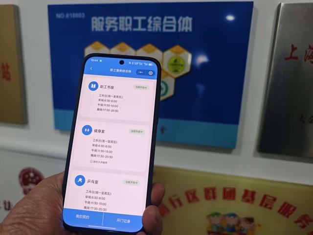 这座面积达610平方米的综合体,是闵行区唯一、全市第三个投用的职工服务综合体。在综合体里,分布着“职工书屋”“瑜伽室”“议事室”“职工健身驿站”“妈咪小屋”等多种服务空间。记者了解到,这里的使用管理运用了数字化手段,职工打开“大金智慧工会”小程序,就能预约场地、扫码入场,系统自动识别、全程无人值守。休息、健身、学习都能在指尖完成,让每一次使用都省心又高效。
