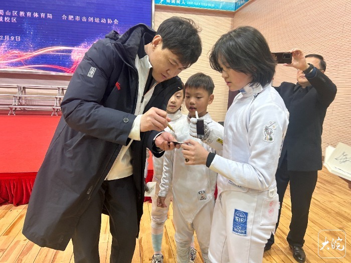 聘任仪式上,合肥市习友路小学教育集团党总支书记余华向仲满颁发聘书。仲满也在击剑服上签名留念,这份承载奥运精神的纪念品将成为校园文化的珍贵组成部分。他寄语所有小剑客“希望大家今后都能取得优异的成绩。”