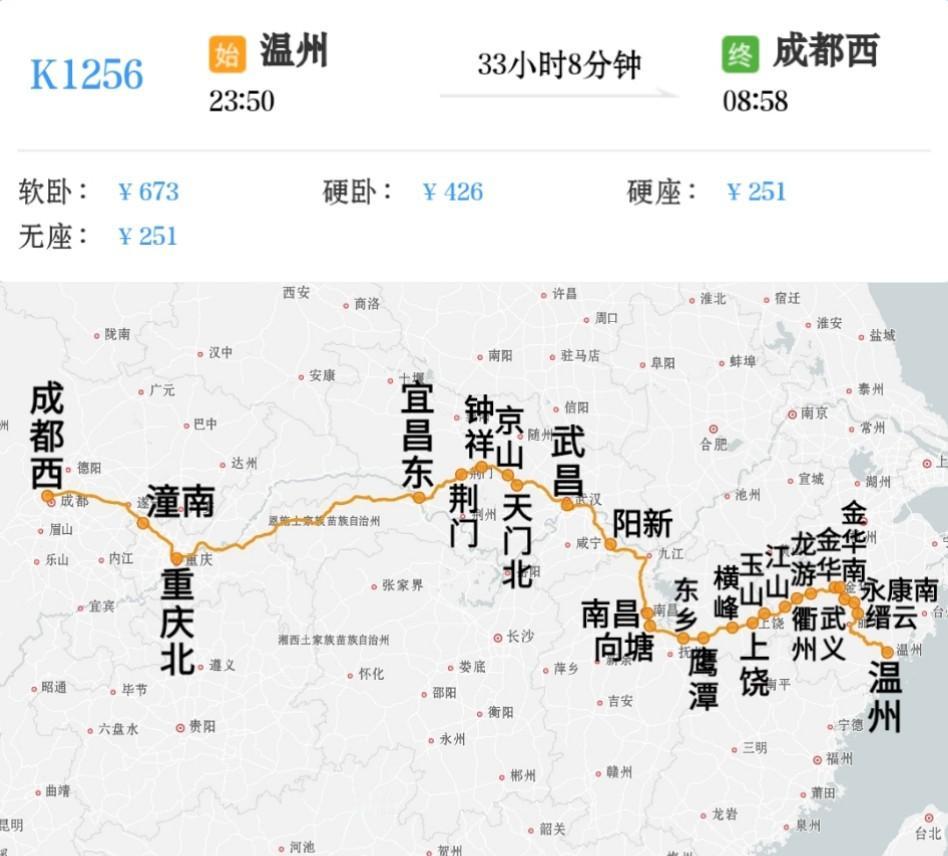 成都到温州唯一一对绿皮火车 成都西到温州K1258/K1255次 温州到成都西K
