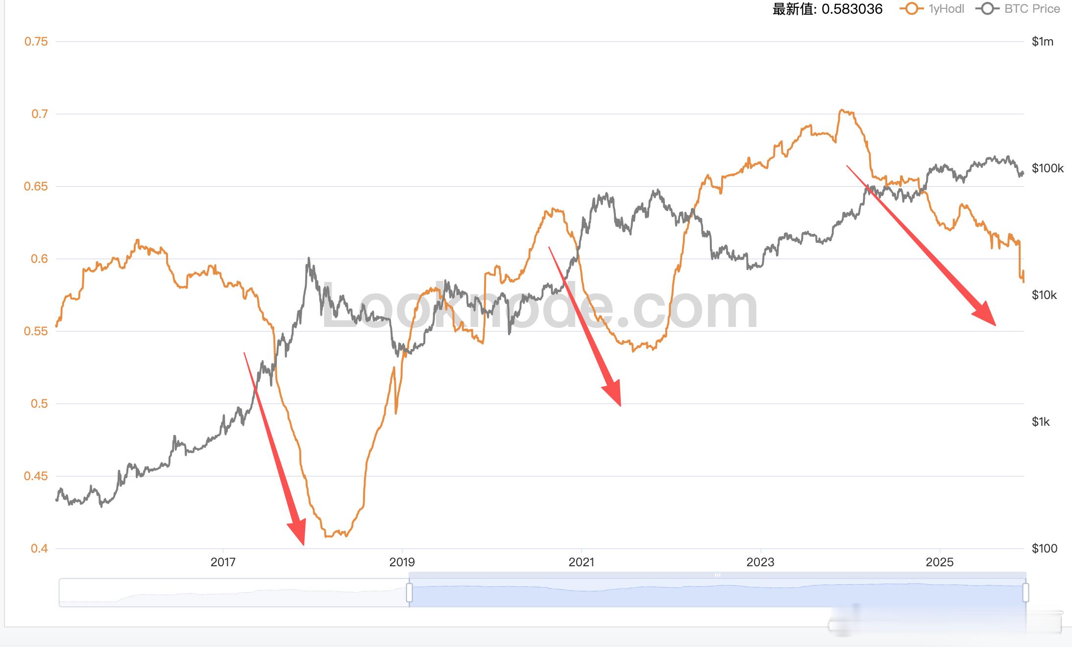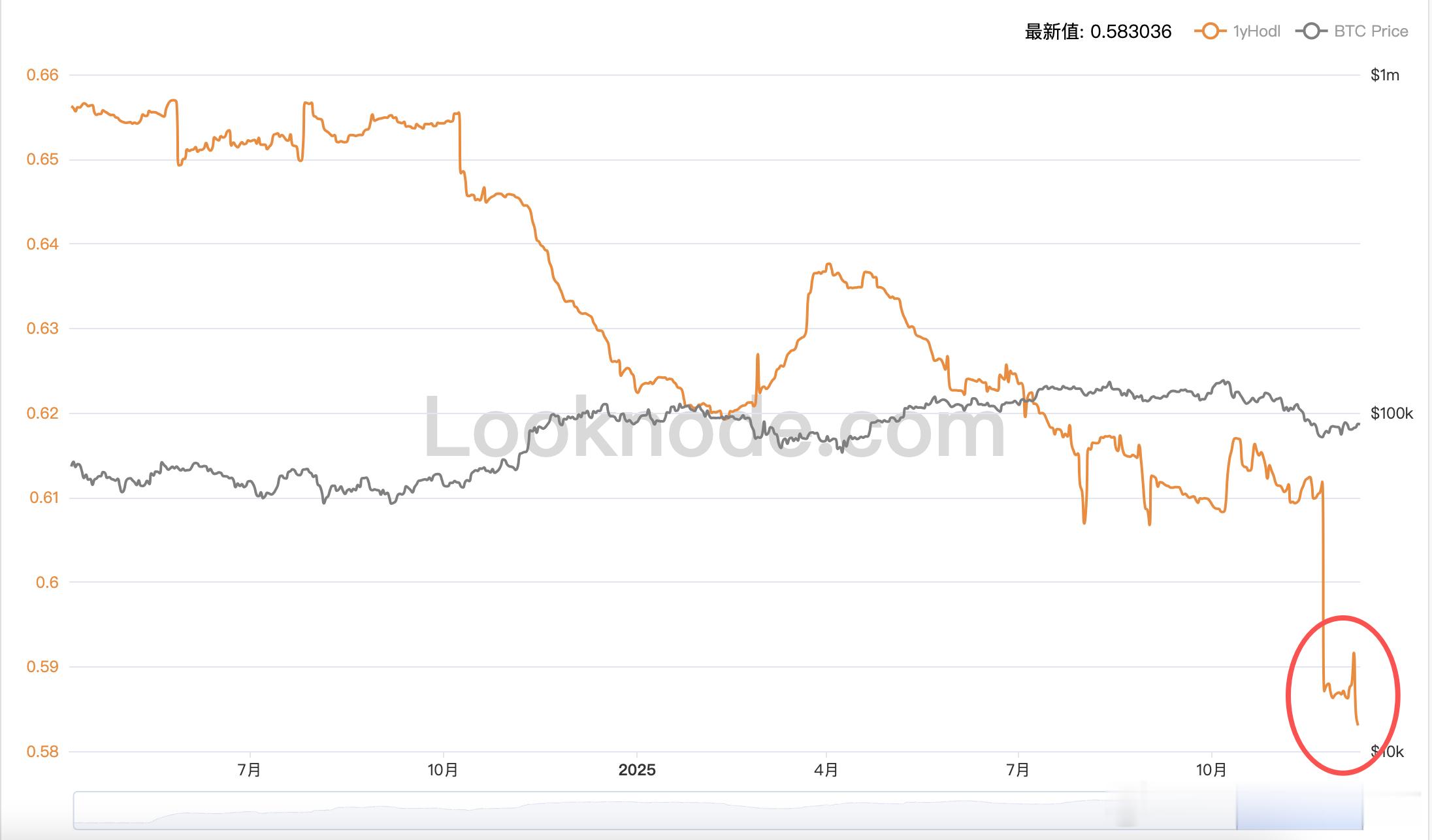 Good afternoon!明天凌晨3点,美联储将公布12月利率决议目前降息的概率是87.6% 不降的概率是12.4% 市场现在已经完全price in了降息的预期,不出意外的话,今天晚上也是铁定要降了现在关键点就来到了决议后的鲍威尔讲话时间,需要着重关注下“点阵图”2026年利率路径。如果,我是说万一,有那么12%的概率是不降息的,被碰到了,那明天早上起来就可以瀑布洗脸了。另外来关注一下1年以上长期持有者的数据,目前随着价格的上涨,长期持有者仍然在坚持抛售,这个和历年来的情况就对上了,上涨时派发,下降时积累。现在任然处于派发的周期内,而巨鲸的历史数据有买对买错,而长期持有者这么多轮的牛熊,几乎没有错过。最近已经很长时间没有回复大家评论了,给大家说个抱歉,之前有些人搞的我不想回复,今天开始,每条认真评论的我都会认真回复还有我的X和微博几乎每天发的同样的内容,结果我的X竟然先被封了,真的不可思议,而且没有说任何原因,后面我会再开个新的发出来,到时候大家可以关注一下
