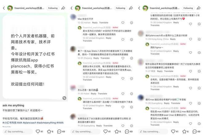 他很爱蹲在评论区,寻找随机刷新的野生产品经理,他们经常对APP开发有些独特的见解。PlanCoach90%的功能迭代,都来自小红书社区的用户反馈。