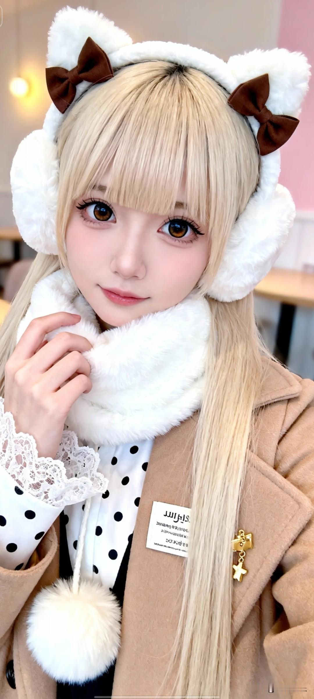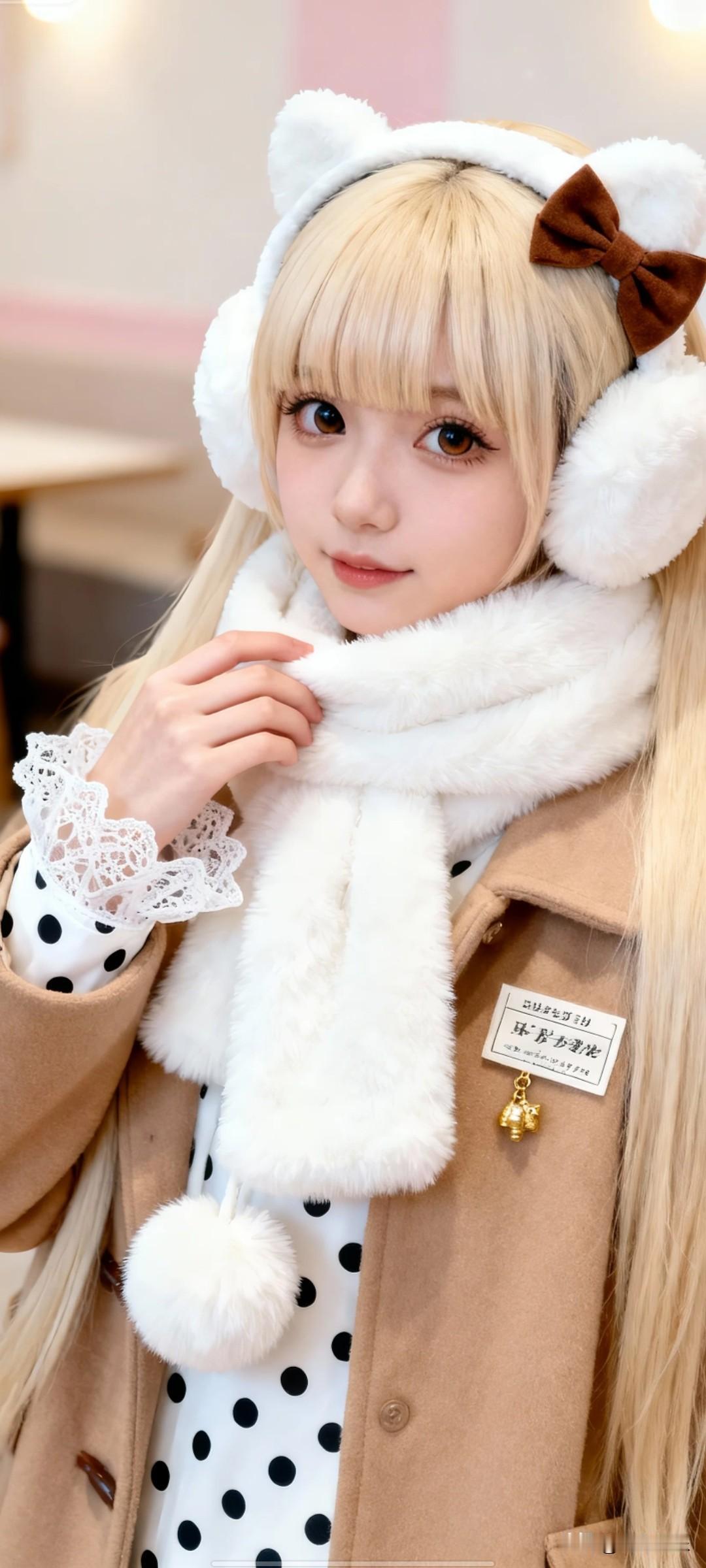 可爱萌妹子,毛绒耳罩和围巾,甜美风穿搭