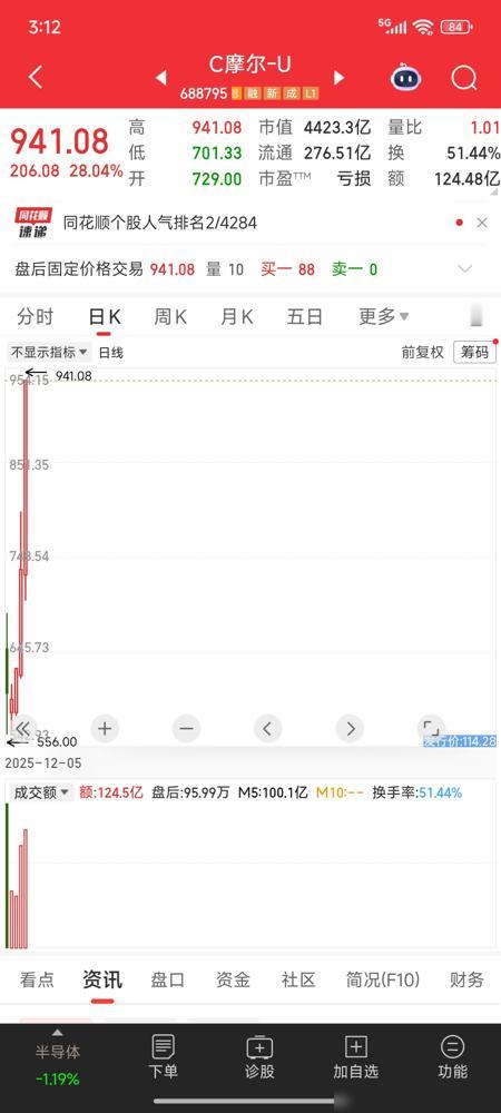 A股今天最强的票诞生了 你的摩王无限猖狂,简直屌爆了 该票开盘后股价持续走高 这股疯涨的架势确实吸引眼球。但热闹背后,更需要冷静看看。 所谓的“摩王”其实是近期上市的新股——摩根士丹利资本(简称“摩卡”)。连续三天大涨,股价冲进A股前三,仅次于茅台和寒武纪。一手就要几万块,普通散户根本碰不起。 机构进场痕迹太明显了。分时图斜率陡峭,明显是大资金在推高。这种走势在新股里确实罕见,但历史经验告诉我们,短期暴涨的新股往往伴随剧烈波动。 去年寒武纪上市初期也经历过类似疯狂,股价翻倍后又腰斩。追高的散户套牢不在少数。这次“摩王”的走势,难免让人担心重蹈覆辙。 更重要的是估值问题。目前摩卡动态市盈率已超过200倍,而同行业龙头平均才30倍左右。机构抱团炒作的味道太浓,基本面根本撑不起这么高的价格。 这种炒作对市场健康没好处。少数人吃肉,多数人连汤都喝不上。反而加剧了A股“散户被割韭菜”的恶性循环。 真正的价值投资不该是这样。好公司需要时间沉淀,而不是靠短期资金堆砌泡沫。茅台能稳坐股王宝座,靠的是几十年如一的盈利能力和品牌护城河。 面对这种暴涨股,保持理性比眼红更重要。股市里最怕的就是跟风追高,最后成了接盘侠。 长期来看,市场总会回归理性。虚高的股价终会回落,只有那些真正创造价值的企业才能走得更远。 对普通投资者来说,守住自己的钱袋子才是硬道理。别被短期暴利迷惑,稳健投资才是长久之计。 这份冷静,比羡慕别人吃大肉更有价值。 MCN双量进阶计划