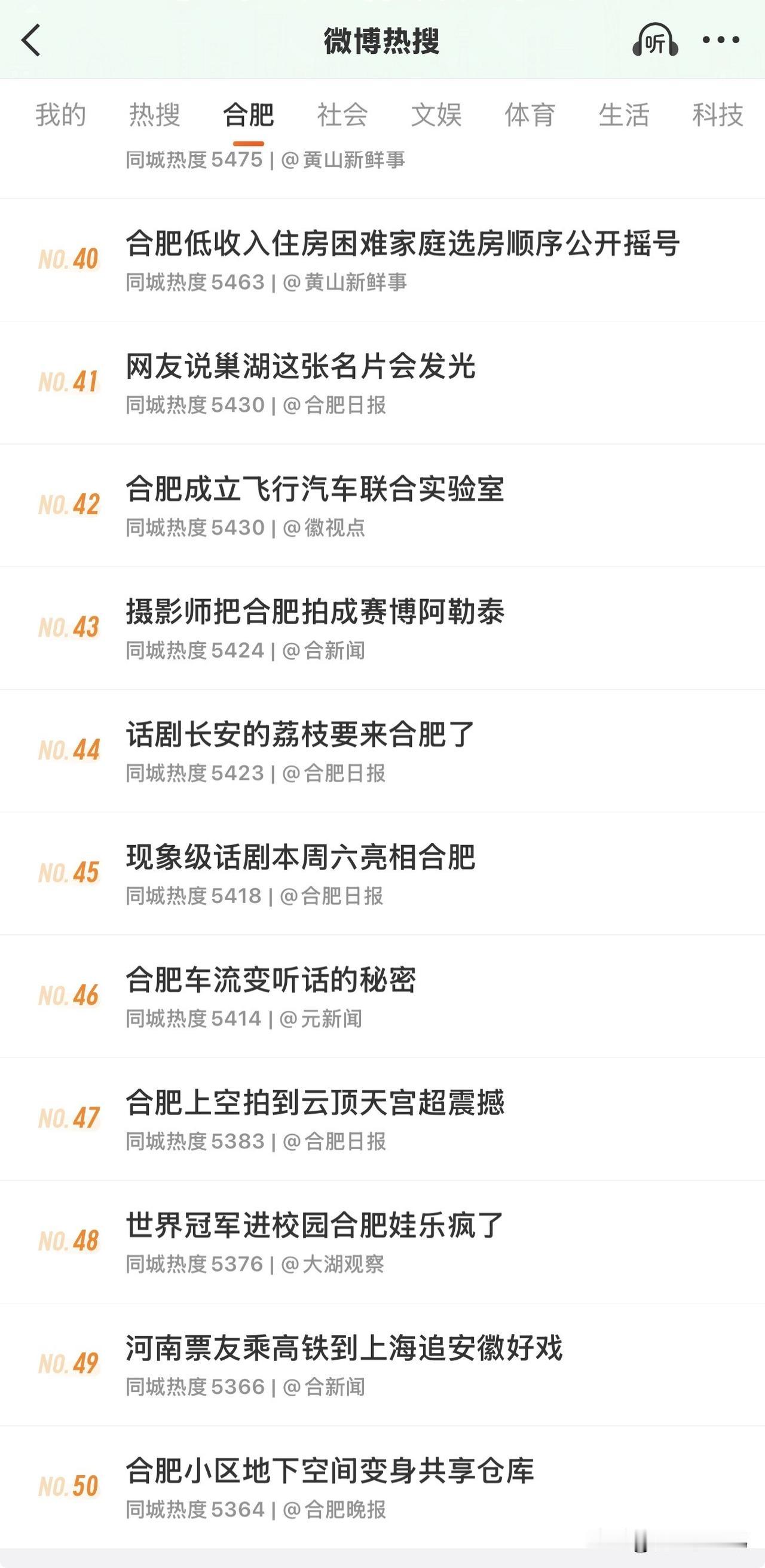 合肥自媒体真的太发达了吧!平常没啥大新闻的时候,微博热搜都能稳冲50条+,不管是烟火民生、文旅美食,还是科创动态,随手一截都是本地话题热度拉满。小红书笔记量常年领跑,短视频点赞亿级飙升,本土传播力肉眼可见的能打,这热度跻身全国第一梯队妥妥的没毛病[赞]