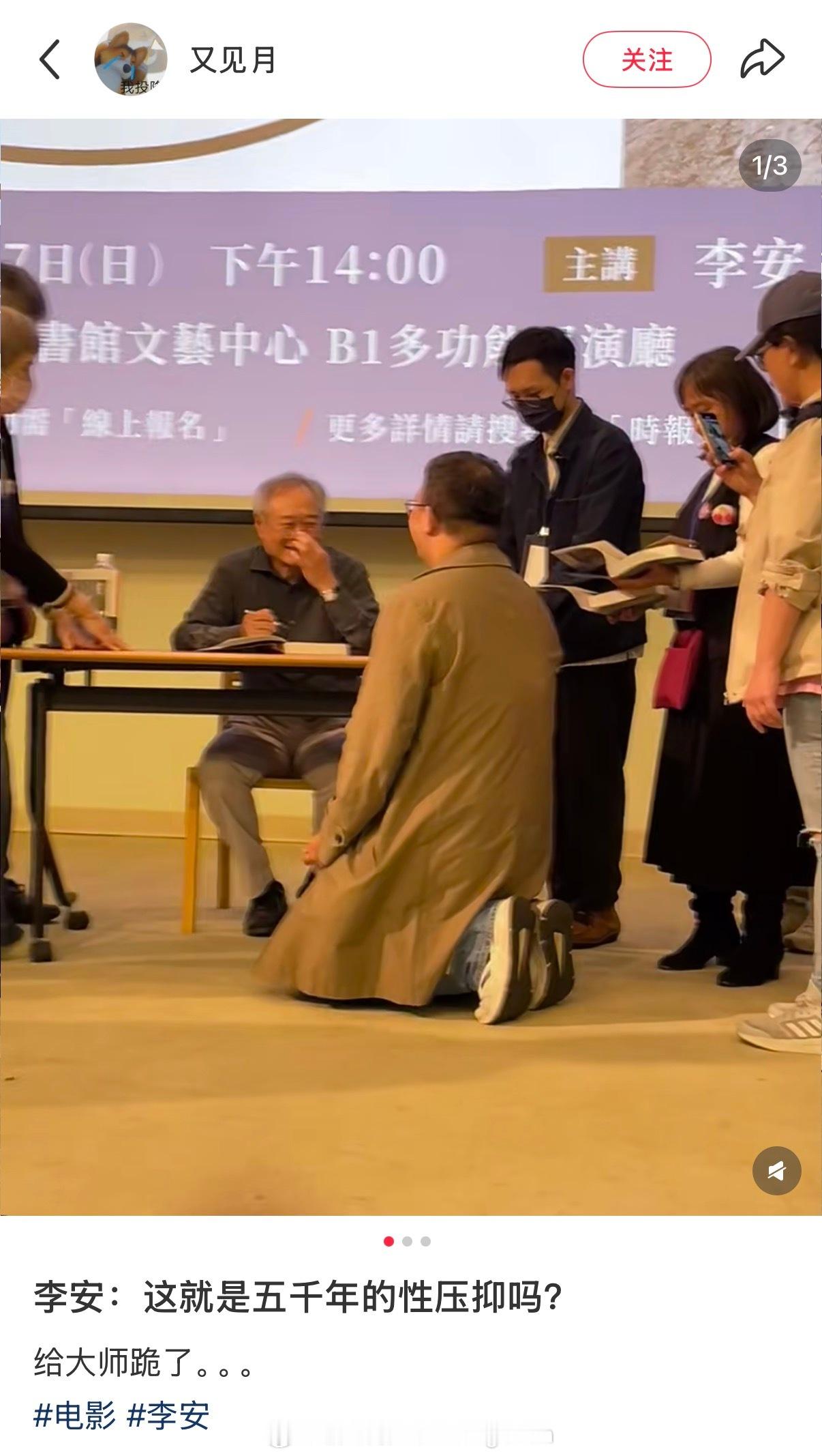 李安:你正见识到五千年性压抑的结果。网友在李安签售会上下跪求签名跨年电影愿