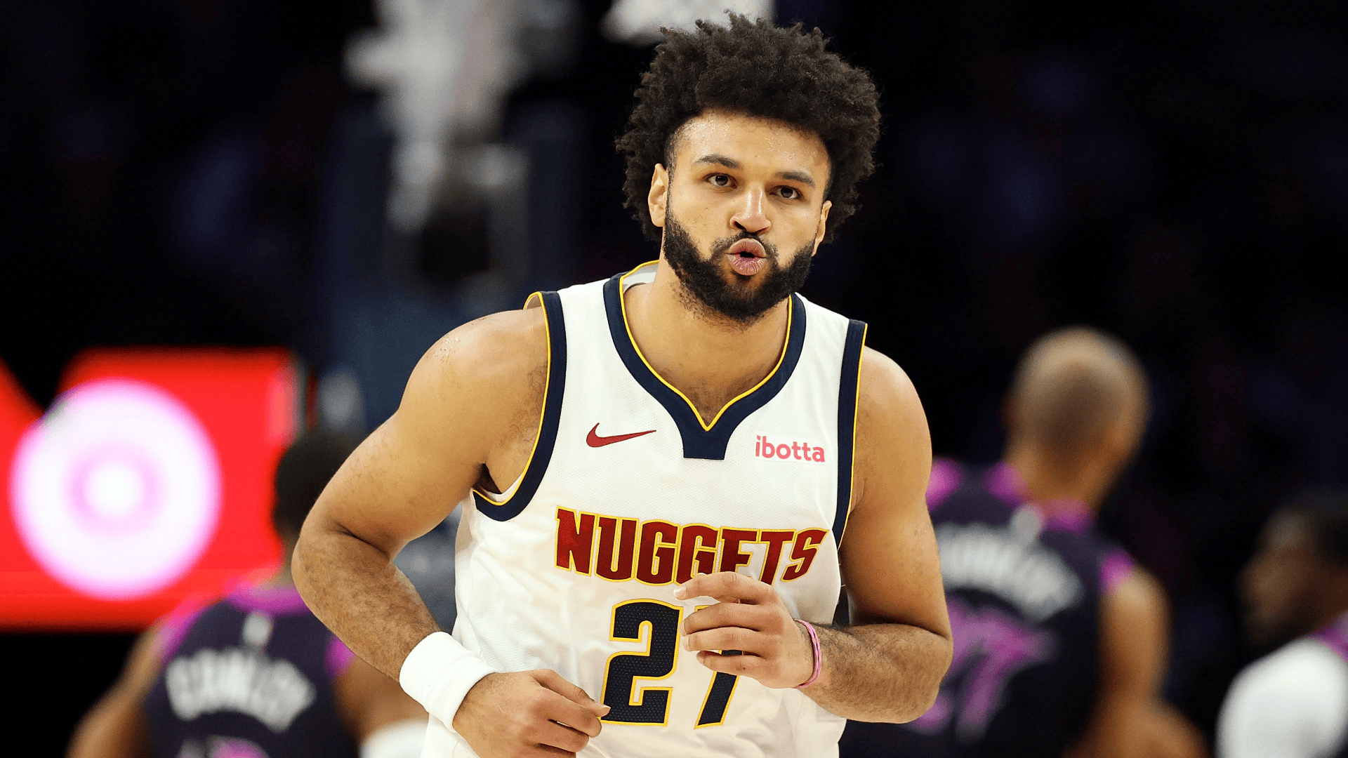 在上半场比赛中,掘金球员贾马尔-默里半场9投4中,三分3中1得到11分2篮板7助攻2抢断。