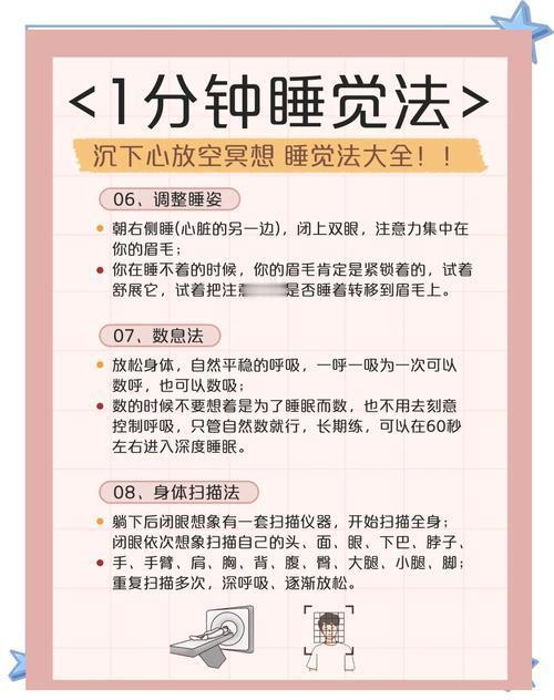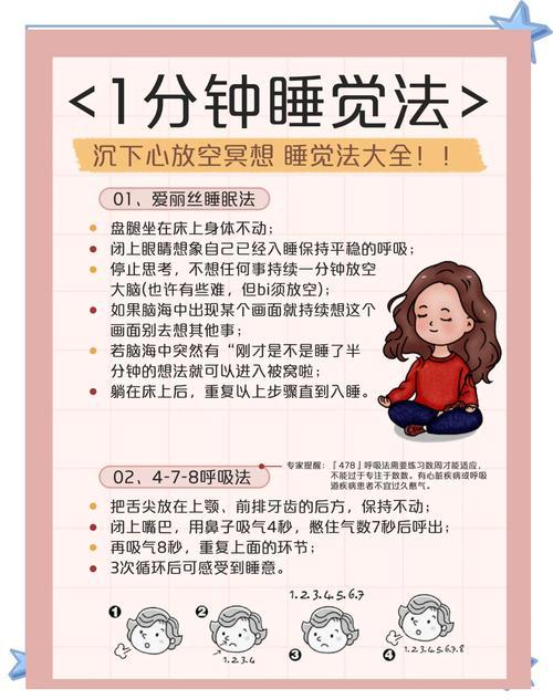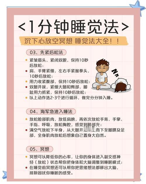 关灯后翻来覆去数羊到天亮?眼睛困到发酸,大脑却像放电影一样停不下来? 别再硬熬了!这3个超实用的入睡小技巧,亲测有效,5分钟就能帮你摆脱失眠困扰,躺平就能睡! 1. 478呼吸法:给大脑按下「关机键」 这是公认的「天然安眠药」,原理是通过调节呼吸频率,让身体快速放松。 做法超简单:用鼻子深深吸气4秒,感受腹部像气球一样鼓起;屏住呼吸7秒;再用嘴巴慢慢呼气8秒,发出轻微的「嘶嘶」声。 重复3-5次,你会明显感觉到心跳变慢,大脑的杂念逐渐消散,困意自然而然就来了。 2. 「身体扫描」放松术:赶走紧绷感 很多人失眠是因为身体处于紧张状态,自己却没察觉。 操作步骤:从脚趾开始,逐部位感受肌肉的状态,先刻意绷紧1秒,再彻底放松3秒,慢慢往上到脚掌、小腿、大腿、腹部、手臂,最后到头皮。 整个过程不用动脑,只专注于「绷紧-放松」的触感,身体松下来的瞬间,睡意会直接找上门。 3. 「白噪音」+「单调想象」:打造专属睡眠结界 如果环境太吵,或者大脑忍不住胡思乱想,试试这个组合拳! - 手机播放白噪音(雨声、风声、篝火声都可以),它能掩盖外界干扰,让大脑进入「放空模式」; - 闭上眼睛,想象一个极其单调的场景:比如一片一望无际的草原,只有风吹过的声音;或者一条缓缓流淌的小河,水流慢慢悠悠…… 重点:不要加任何复杂情节,越单调越好,大脑会因为「无聊」而主动进入睡眠状态。 最后提醒一句:睡前1小时别碰手机、别刷短视频!蓝光会抑制褪黑素分泌,越刷越精神。 今晚就试试这3个方法,祝你告别失眠,一夜好眠到天亮! 失眠自救指南 快速入睡小技巧