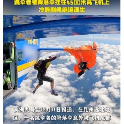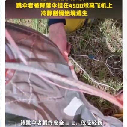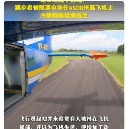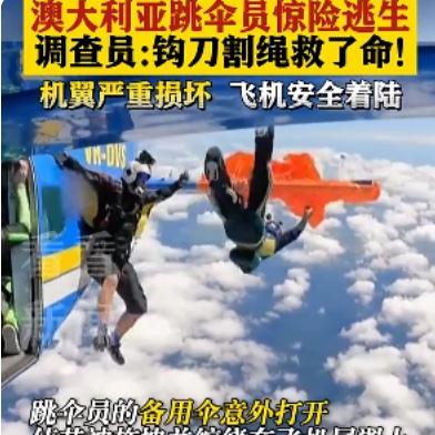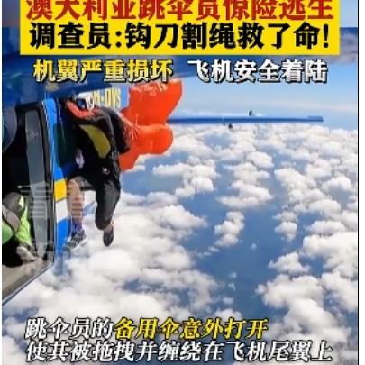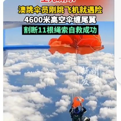 吓出一身冷汗!澳洲跳伞员高空被飞机缠住,凭一把小刀死里逃生 澳洲最近出了件超惊险的事,一名跳伞员4500米高空跳伞时,降落伞突然被飞机缠住,悬在半空命悬一线,最后靠自己硬刚脱险,过程比电影还刺激。 当时这名有21年经验的跳伞员,跟着团队乘飞机升到高空准备起跳。刚凑到舱门,备用降落伞的手柄就不小心勾到机翼,伞面瞬间张开,强大气流直接把他拽出机舱,降落伞还缠在了飞机尾翼上,把他吊在高空动弹不得,同行的摄像师也被带得掉了出去,场面一下子就失控了。 换谁遇上这情况估计都慌了,但他没乱分寸,赶紧掏出随身带的钩刀,在呼呼的高空气流里,一下下精准割断11根缠在一起的伞绳,总算挣脱了飞机。下坠的时候他迅速打开主伞,就算主伞和残留的伞绳有点缠,也被他冷静处理好,最后稳稳落地,就腿擦破点皮,算是捡回一条命。 受牵连的飞机操控也失灵了,飞行员差点要弃机,还好凭着硬本事,勉强把受损的飞机迫降成功,没出更大乱子。这事也给喜欢极限运动的人提了个醒,随身带好应急工具太重要,关键时候能救命,专业技能和冷静心态更是保命底牌。 极限运动虽爽,但安全永远是第一位的。你觉得普通人真有勇气尝试这类高风险运动吗?