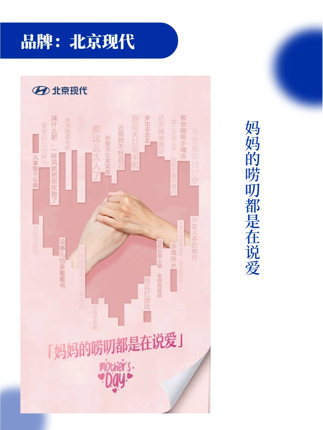 5月8月母亲节,各大品牌纷纷借势营销,推出了母亲节海报❤️ 致最好的妈妈,走心文案,哪句最打动你?[害羞R] - [害羞R]杜杜:多一种身份,不必丢掉原来的部分 [暗中观察R]百合网:找对象这事,自己多上点心,母亲就能少操点心 [飞吻R]腾讯视频:是妈妈,也是她自己 [赞R]顺丰:礼物快一点,陪伴时间慢一点 [喝奶茶R]海澜之家:用爱编织最温暖的铠甲 [吧唧R]北京现代:妈妈的唠叨都是在说爱 [派对R]同程旅行:再出发就同程 [偷笑R]吉利汽车:越微笑越年轻,越快乐越吉利