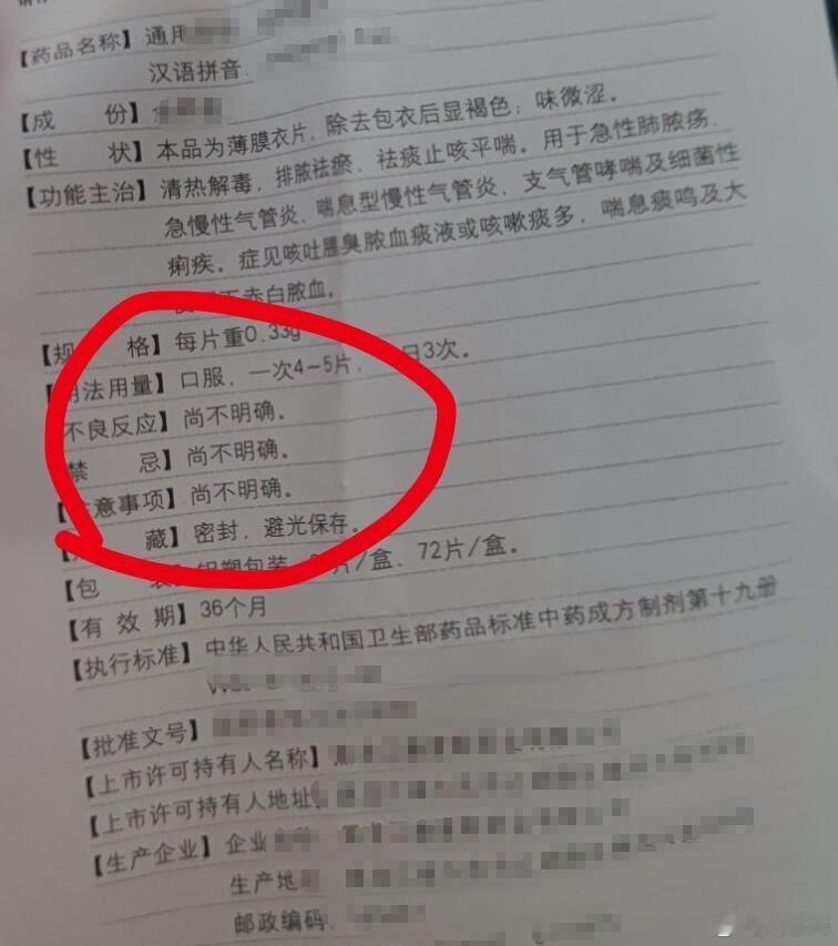有人说这是药厂试图规避责任吗?或许,有可能,但这不是重点,说明书越是详细,就证明这款药越是严谨、测试过程非常严格,是可以信赖的药。当然了,能不能吃、该怎么吃,开头那部分就知道了,用法用量、不良反应、禁忌症等等,这些需要格外留意。说明书,就是让你去阅读的,对自己、对药品都心里有数。说到这儿,你看,中成药确实说明书很简单,就一张纸,但是不良反应、禁忌症等等都是“尚不明确”,你敢吃?药品说明书1粒米能挡6个字业内人士称药品说明书小字可规避责任