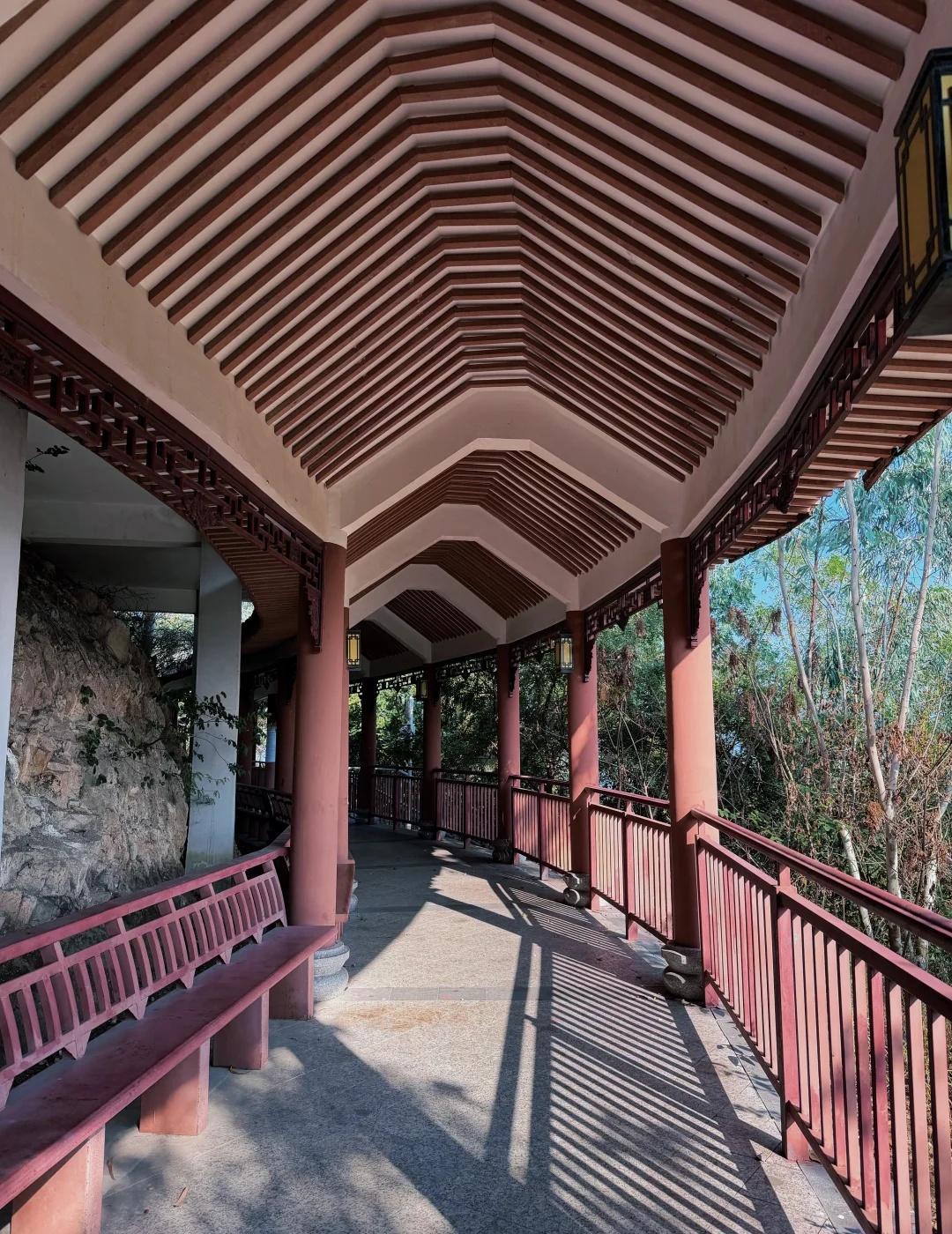 30分钟打卡深圳版“亚马逊”🌳尖岗山徒步攻略 谁说深圳只有钢筋水泥?就在尖岗山!不用长途跋涉,30分钟直达这片城市绿肺,满眼翠绿仿佛置身“小亚马逊”,吸氧洗肺首选!🌲 🛣️3条徒步路径(按体力选) 1. 宝石路入口(最快线):全程“千阶红梯”,虽然累但最直,约20-30分钟登顶,适合想快速打卡红梯和看日落的朋友。 2. 广盛路入口(景观线):坡度较缓,路两旁植被茂密,“小亚马逊”的感觉最浓,适合边走边拍。 3. 上川路入口(休闲线):路况最好,平坦宽阔,适合带老人小孩或推着露营车前往。 📸必拍“小亚马逊”机位 • 雨林秘境:入口往上走一段的林荫道,阳光透过树叶形成丁达尔效应,满屏绿色,滤镜都不用加。 • 赤色栈道:蜿蜒在山间的红色台阶,与周围的深绿形成强烈撞色,俯拍非常出片。 • 山顶古寺与水库:登顶后不仅能看到古朴的建筑,还能俯瞰铁岗水库,视野开阔。 💡游玩TIPS • 最佳时间:下午4点后!此时光线柔和,透过树叶洒下来绝美,还能避开正午的暴晒。 • 穿搭建议:建议穿白色、浅色系衣服,或者卡其色工装风,在绿色背景里非常显眼。 ⚠️注意事项(避坑指南) • 蚊虫超多!!因为植被茂密,一定要喷驱蚊水,不然会被叮成包子! • 防晒:虽然有树荫,但紫外线还是有的,帽子墨镜不能少。 • 补给:山上没有小卖部(有一个洗手间但有点脏),一定要带足水和少量零食。 • 防滑:雨后台阶可能有青苔,穿防滑的运动鞋。 🚗交通方式 • 地铁:5号线兴东站C/D口出站,步行约10-15分钟到达宝石路入口。 • 公交:乘坐B908路到“尖岗山公园”站下车。 • 自驾:导航“尖岗山公园P2停车场”,车位有限,建议早去。 徒步丈量世界 深圳周末去哪儿 深圳小众景点 深圳拍照 城市轻徒步 户外徒步 爬山好去处 治愈系风景 深圳徒步
