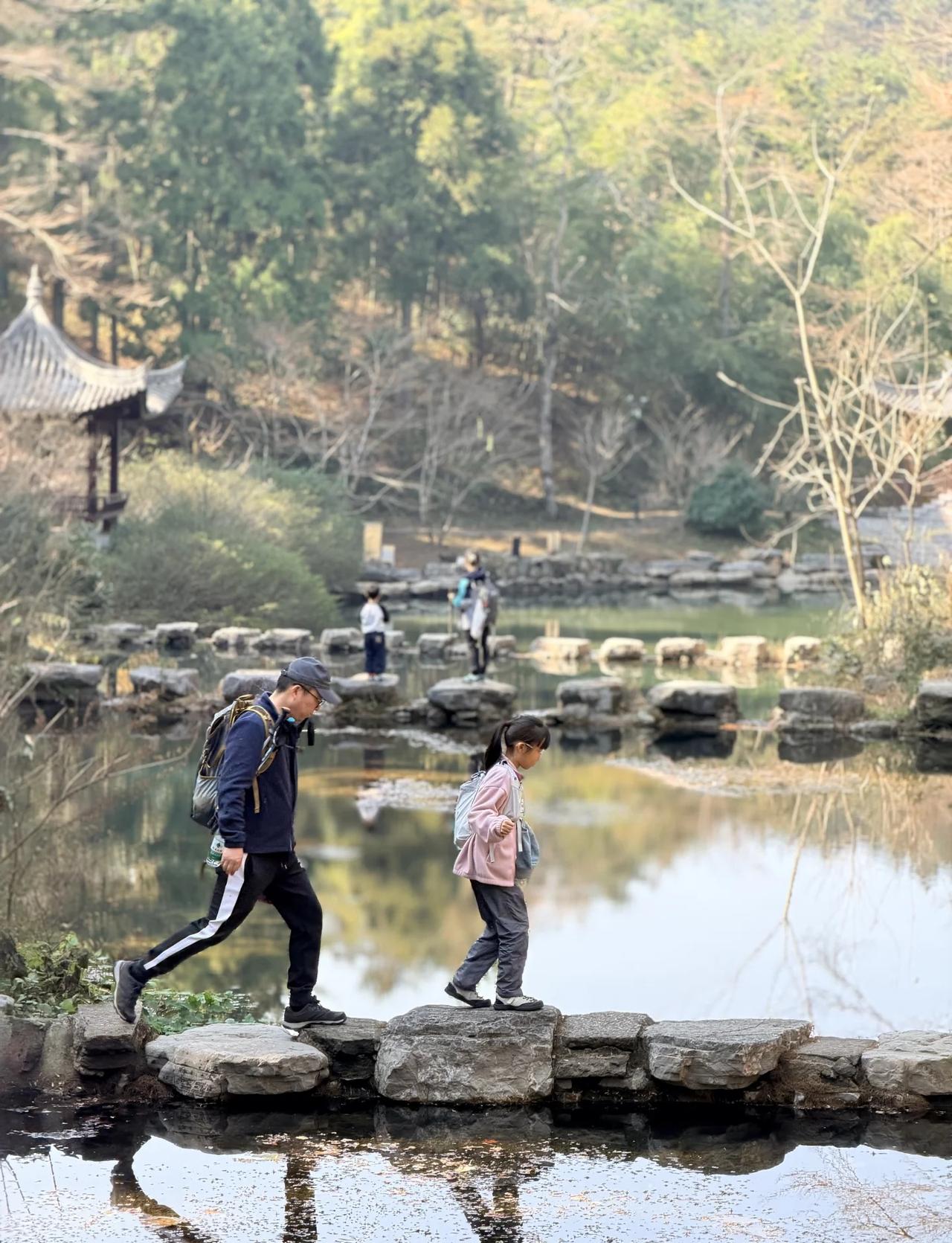 秋天奉化商量岗8.5km环线徒步攻略 这条环线以东姜坑村为起点,全程约8.5km、爬升360m左右,坡度平缓且轨迹清晰,耗时约3小时,新手和亲子都能轻松驾驭,11月中下旬是赏红枫、金钱松的最佳时段,还能免门票畅玩。下面这份攻略帮你轻松解锁秋日美景: 1. 前期准备:导航定位东姜坑村,村里有免费大停车场。穿戴速干长袖与防风外套,搭配防滑徒步鞋,新手建议带登山杖,下坡时能护膝省力。无需带太多补给,沿途配套完善,手机全程有信号,可提前下载轨迹 2. 详细行程 1. 东姜坑村—陈家水库(约2km):从停车场出发沿泥石古道前行,路况平缓无难度。这段能邂逅满坡红枫,湖水倒映着红枫与蓝天,像镶嵌在绿野间的宝珠,是拍秋景的好起点。 2. 陈家水库—云海营区(约2.5km):走青石步道前行,沿途能看到大片金钱松,秋日里针叶泛黄,氛围感拉满。到云海营区后可稍作休整,这里有餐厅、咖啡屋,还有儿童游乐设施,适合带娃家庭短暂停留。 3. 云海营区—冬瓜湖&蒋宋别墅(约2km):沿途古木参天,落叶铺成“黄金大道”。冬瓜湖的秋景堪称明信片级别,蒋宋别墅周边的银杏虽多已落叶,但满地金黄搭配建筑很出片,晴天拍照格外好看。 4. 冬瓜湖—美玲小道—东姜坑村(约2km):这是环线的精华路段,地面铺着厚厚的松针,走起来松软舒适。山腰以下红枫连绵,下坡路段较缓,注意放慢脚步即可,最后沿小道返回起点,结束行程。 3. 实用贴士 1. 景色时效:金钱松观赏期多在11月5 - 15日,红枫11月中下旬最盛,想赏对应景致可精准安排时间。 2. 补给与住宿:中途云海营区、冬瓜湖周边有餐食和咖啡;若想留宿,可选择云上清溪酒店,或溪口曼特丽豪生大酒店等。 3. 其他注意:雨后过溪石路段需小心防滑;全程产生的垃圾请自行带走,文明徒步;若时间充裕,可顺道打卡溪口古镇、雪窦寺,品尝亭下湖红烧鱼头、老鸭牛肉面等美食。 户外徒步 徒步丈量世界 秋游入山去 又到登山赏红叶的好时节 商量岗 徒步圈 徒步攻略 江浙沪徒步 徒步路线