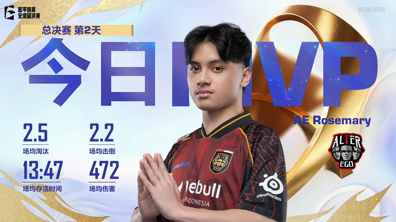 虎扑12月14日讯2025和平精英全球总决赛,AE-Rosemary获得决赛赛段第2日MVP。