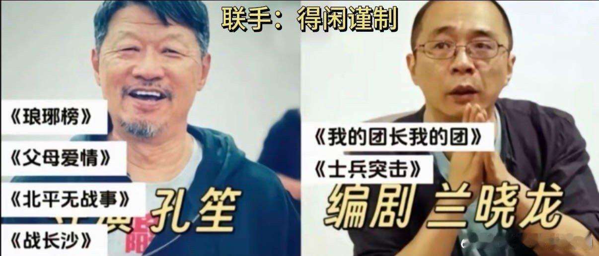 兰晓龙 孔笙我看着你长大的 看到兰晓龙调侃孔笙,就知道《得闲谨制》稳了!这对从《生死线》就开始并肩作战的老友,一个擅长编织筋骨扎实的故事,一个擅长营造极具张力的影像,堪称“品质双保险”。