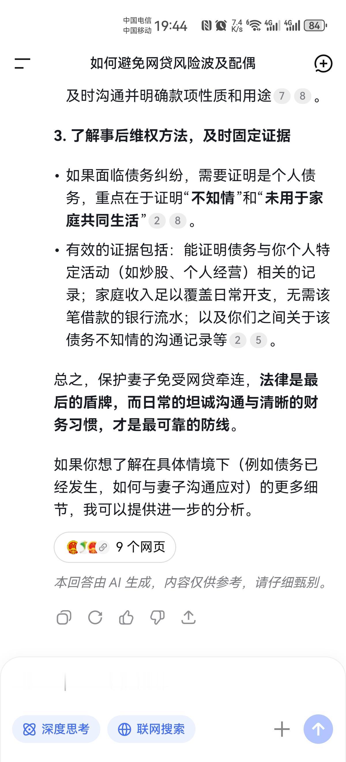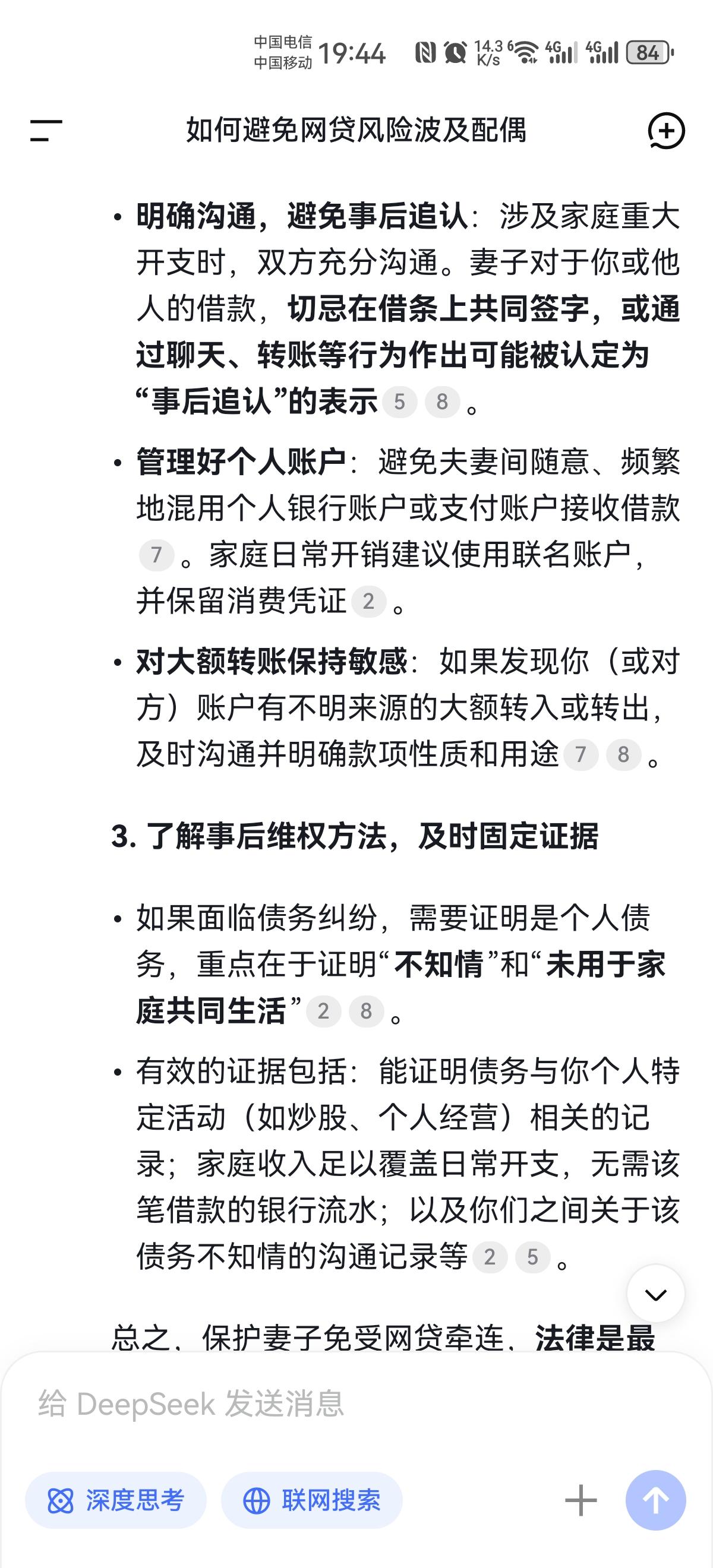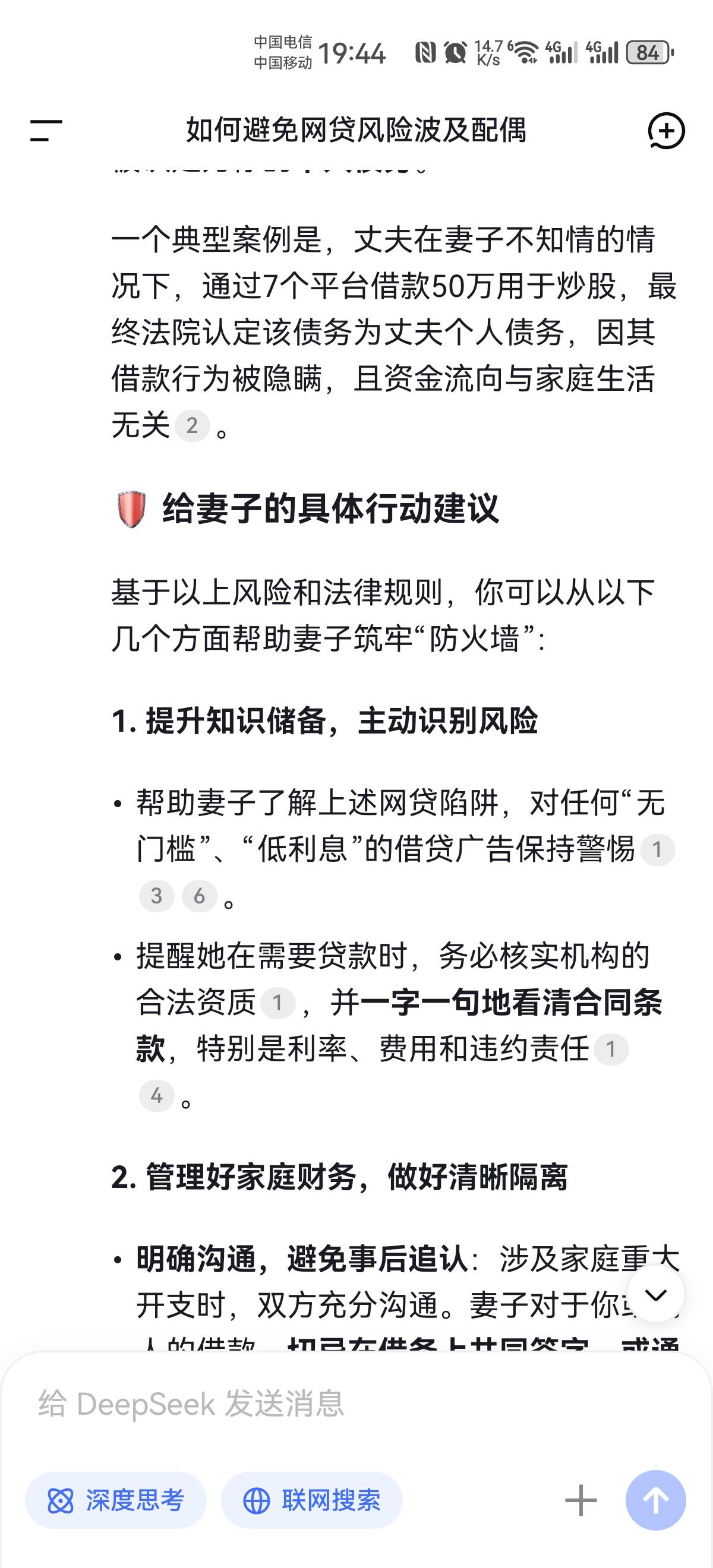 作为销售老油条,我有话要说, 一个男人借了网贷,如何让妻子避免掉入坑里,看看Deepseek怎么说?