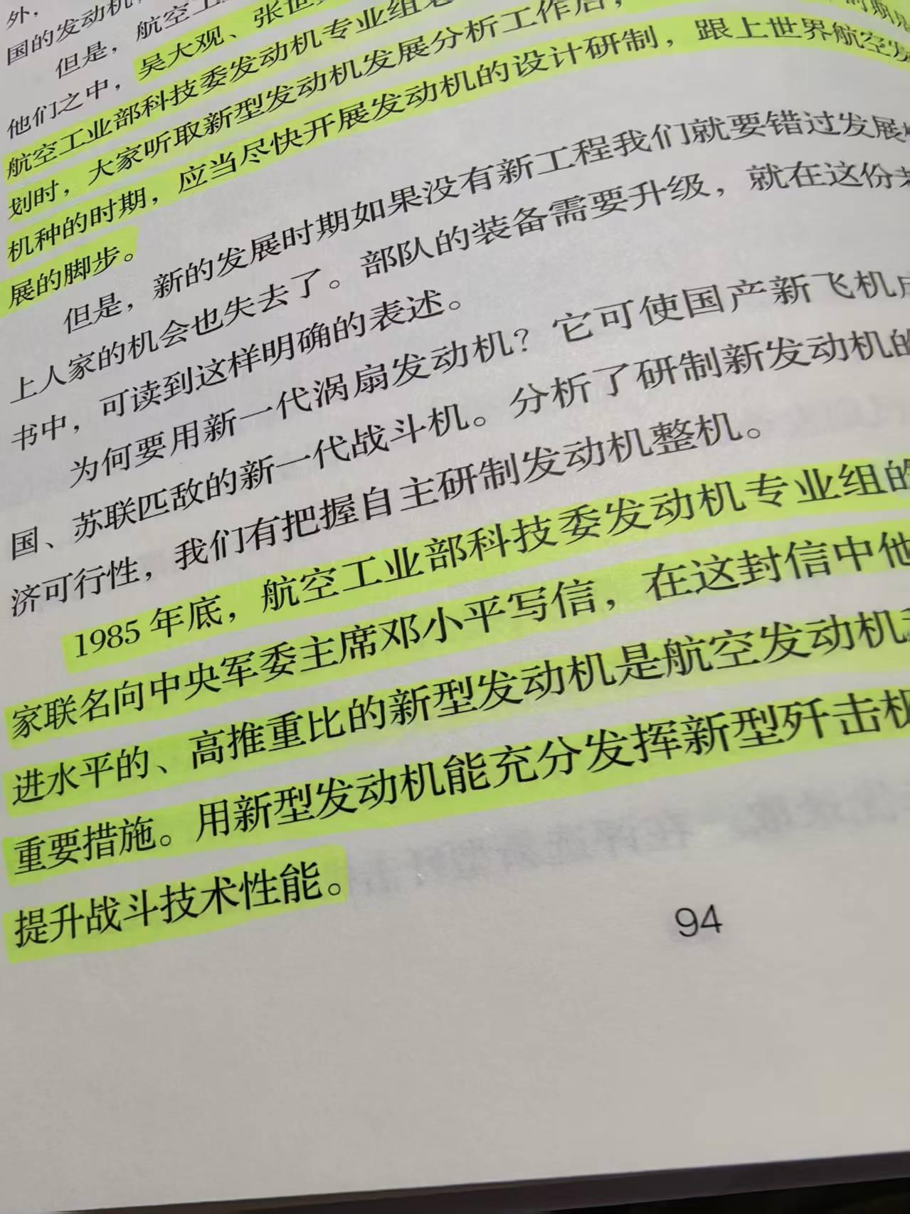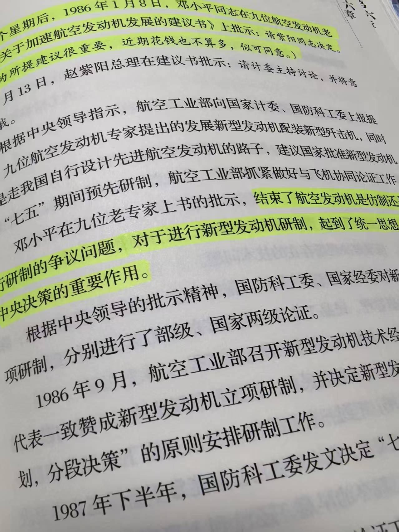 《张恩和》这本书看起来有点特别,许多内容给人一种不连续的感觉,不少故事没能从头写到尾,估计是涉及到一些敏感的问题,在出版前对原始稿件进行了调整。尽管如此,这本书还是能让大家看到张恩和老先生所经历的中国航空发动机最重要的那个发展阶段,也就是从迷茫到果决的转变,从910发动机到太行、昆仑,张老经历过太多磨难,这不仅是他个人的磨难,也是中国航空发动机事业的磨难。正是因为有张老这批人的坚守,我们才从这些磨难中找到了发动机研制的客观规律,也真正明白没有自主研发的航空发动机,国产新一代战斗机是无法实现技术和产能全面自主可控的,中国迈向航空科技强国的道路上将缺少一块至关重要的铺路石。当年910发动机工程已经是一款性能比较先进的加力涡扇发动机,从60年代一直干到80年代,花费20年时间,期间“三上四下五转移”(张恩和先生语),尽管已经取得了相当大的成果,但是却因为配套飞机项目下马而同被迫停止。等到中国开始冲击第三代战斗机时,发现先进发动机仍然是个缺项。于是也就有了1985年吴大观等9位老专家联名致信中央军委,大声疾呼:具有先进水平的、高推重比的新型发动机是航空发动机科研打基础、上水平的重要措施。用新型发动机能充分发挥新型歼击机的战斗潜力,较大幅度提升战斗技术性能。不到一个星期,邓公在这份《关于加速航空发动机发展的建议书》上批示,我认为所提建议很重要……似可同意。这一决定,为中国新型战斗机配装国产新型发动机创造了条件,更为“太行”立项奠定了基础,更重要的是,它标志着中国航空动力正式开始在自主条件下冲击具备世界先进水平的高推重比涡扇发动机。这款被命名为“太行”的发动机,最终由张恩和先生担任总设计师,经过近20年的淬炼,终于功成,其中的许多挫折细节,书里写了,大家可以自己去看,感受挫折时分的那种窒息压力。有趣的是,根据书中介绍,许多当年为910发动机准备的资源,后来还都用在了“太行”上。