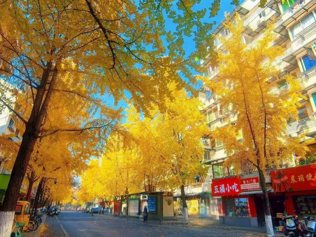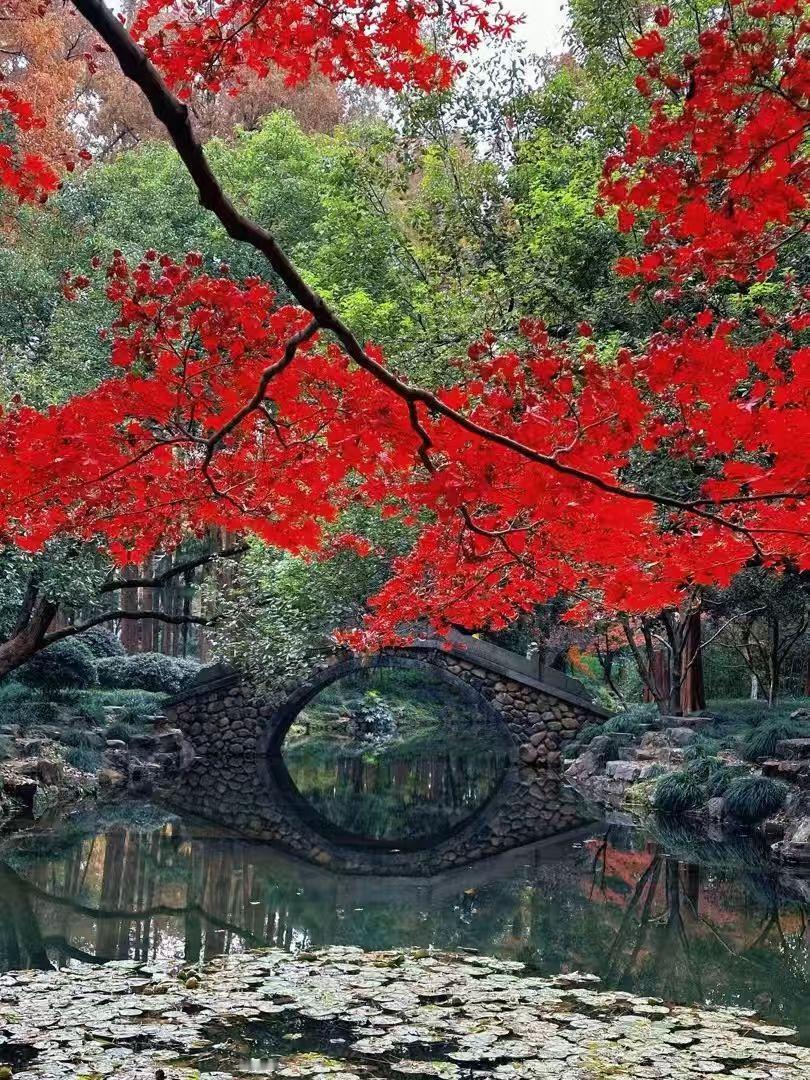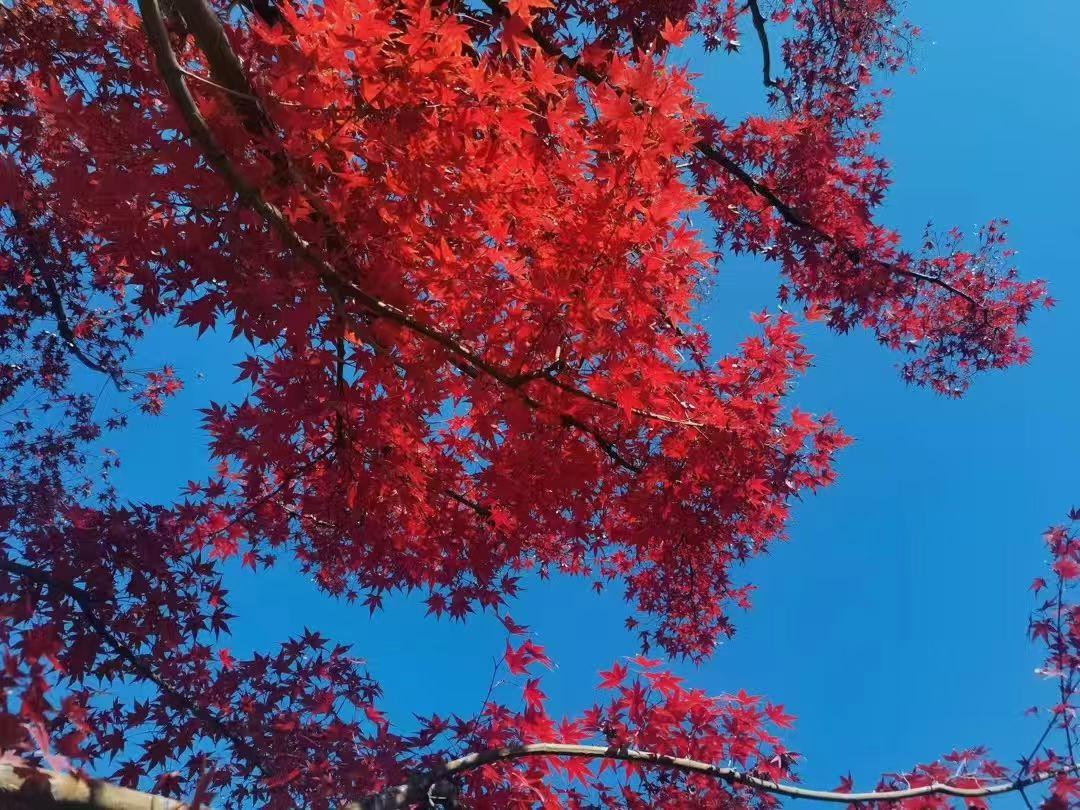 秋意渐浓,枫叶红艳,古风建筑映衬,宛如画卷。